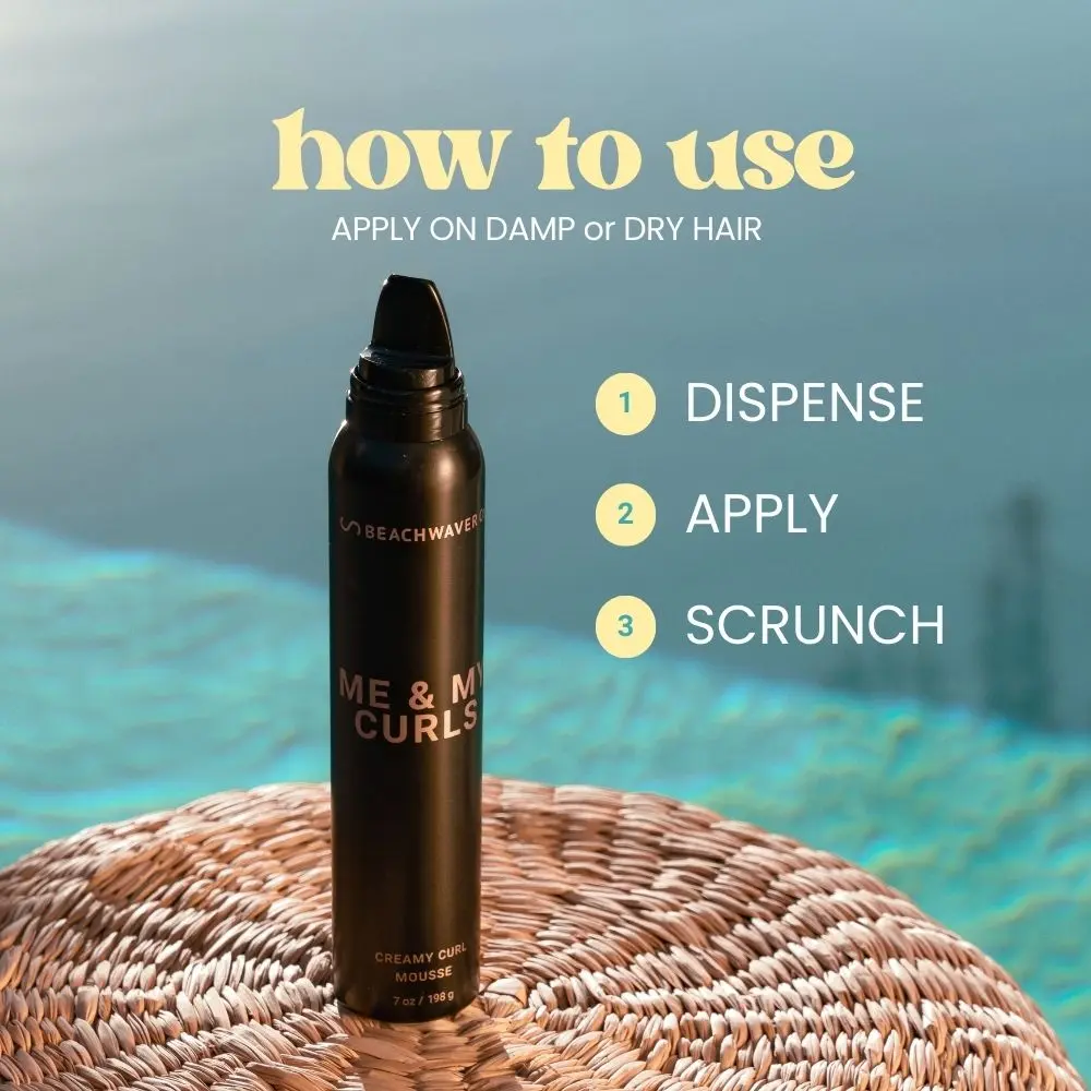 Beachwaver's Me & My Curls Creamy Curl Mousse is a must-have for flawless curls! It defines and enhances natural curls with a soft, touchable hold. Perfect for all curl types, it leaves hair bouncy and frizz-free. Highly recommend for stunning, effortless curls! #CurlPerfection #Beachwaver
