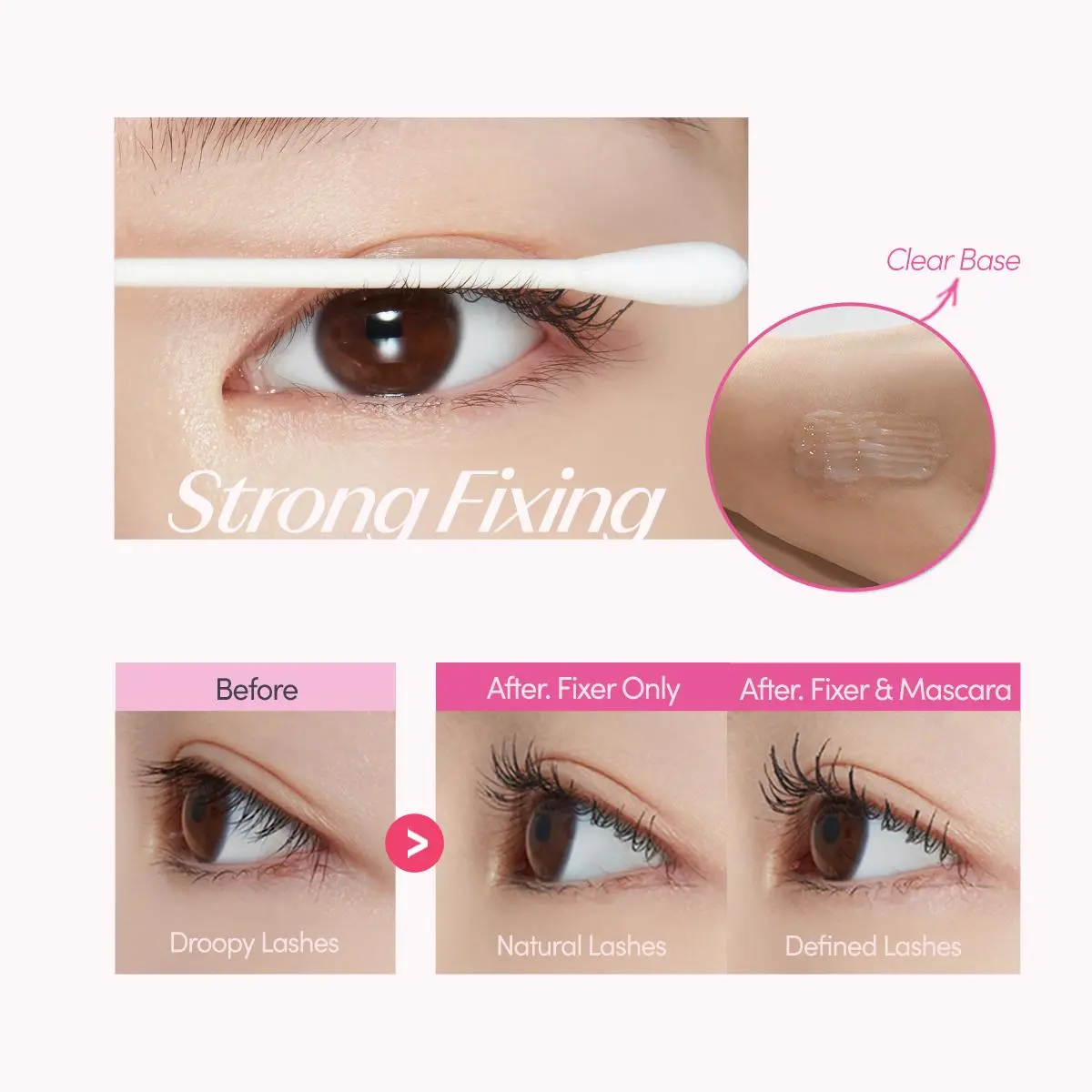 ·Synergy EffectApplying Dr. Mascara Fixer before the Curl Fix Mascara creates a perfect base that enhances the curl and length of your lashes, making them look fuller and more defined.