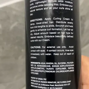 The unique blend starts with Aqua and Mineral Oil, delivering intense moisture and locking it in for soft, nourished curls. Glycerin works to attract and retain hydration, ensuring your hair stays smooth and frizz-free no matter the humidity. The addition of Polysorbate 20 and Isohexadecane ensures even product distribution and a silky, non-greasy finish that wont weigh your hair down.For long-lasting hold and structure, the advanced Sodium Acrylate/Sodium Acryloyldimethyl Taurate Copolymer and Acrylamidopropyltrimonium Chloride/Acrylamide Copolymer create a flexible yet durable layer around each strand, maintaining the integrity of your curls without stiffness or crunch. A subtle Parfum adds a fresh, clean scent to complete your styling experience.
