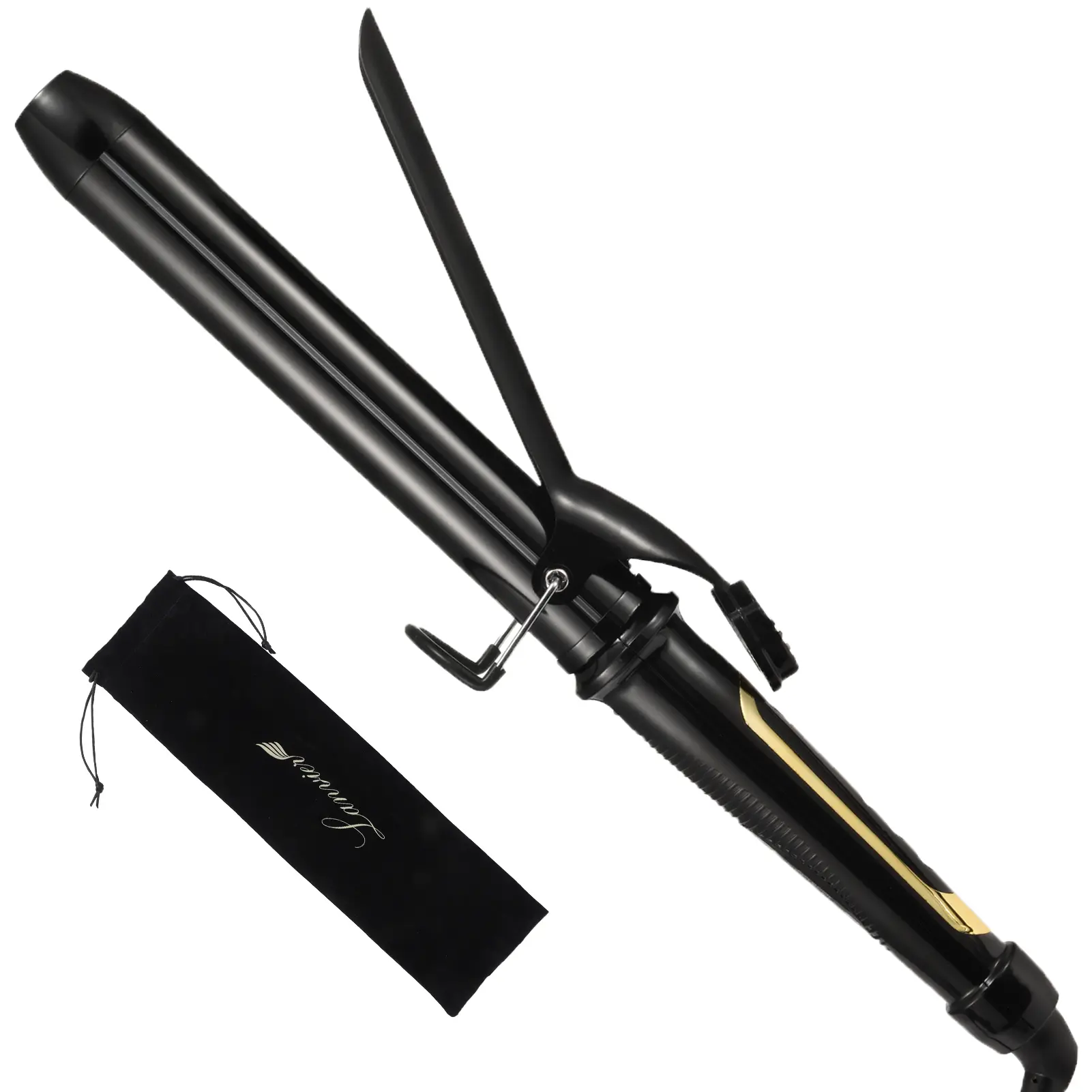 ·[8.5 Inch Extra Long Ceramic Barrel] - Lanvier 1 1/4 inch curling iron with clamp has 8.5 inch long barrel, which is perfect for long and thick hair to create perfect, comfort & beautiful relaxed curls.