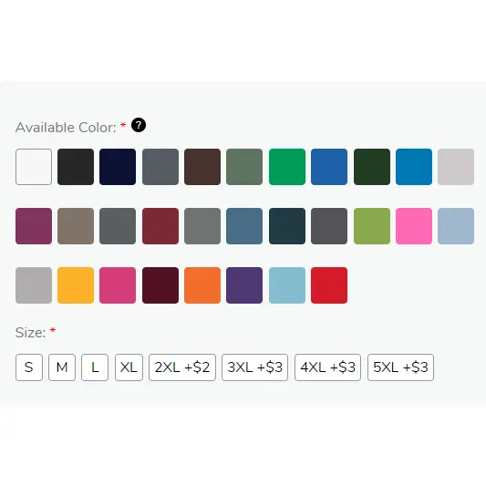 2. Selecting t-shirt size and color