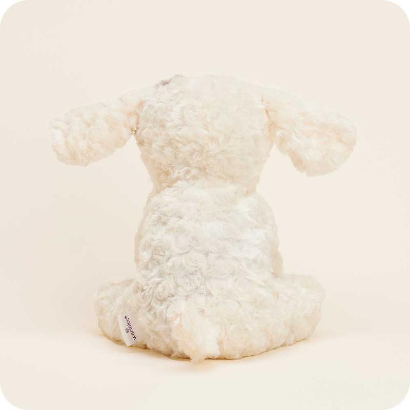 Patch Curly Dog Warmies is ready to sit, stay, and snuggle.