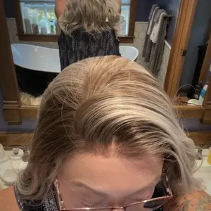 Gorgeous, gorgeous crown! Great construction with natural hairline. The fibers are soft but not shiny, and hardly tangle throughout the day. This is my first JB crown, and I’ll definitely buy more!