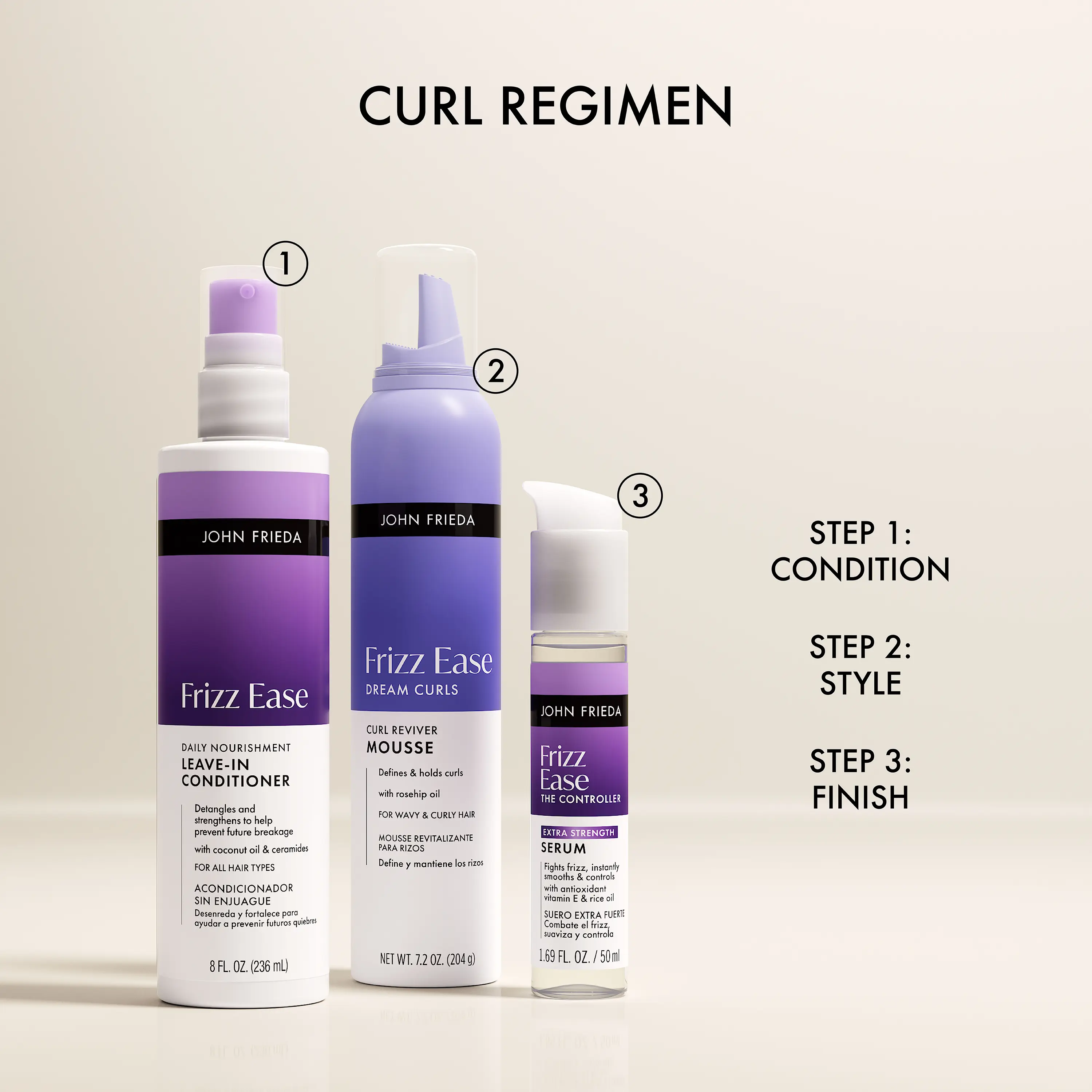 Discover the ultimate hair care bundle to keep your curls frizz-free and flawless with the John Frieda Hair Care Frizz Ease Complete Curl Bundle. This 3-product set includes: