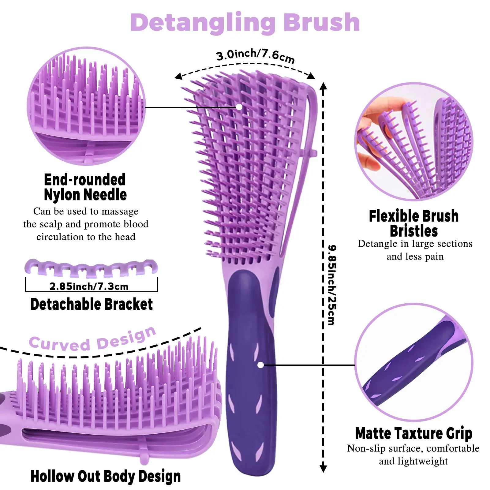 ·【Curly Hair Compatible】As a curly hair brush, it is adept at managing and defining curls while preventing frizz, ensuring curly-haired individuals can maintain their hair's natural beauty.