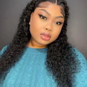 5. Bling Hair Fashion 34 Inch Kinky Curly 13x4 Lace Front Wigs Human Hair Pre Plucked Wet And Wavy 13x4 Hd Lace Frontal Wig Human Hair 180 Density For Women Bouncy Soft Deep Curl Glueless Tangle Free Natural Hairline