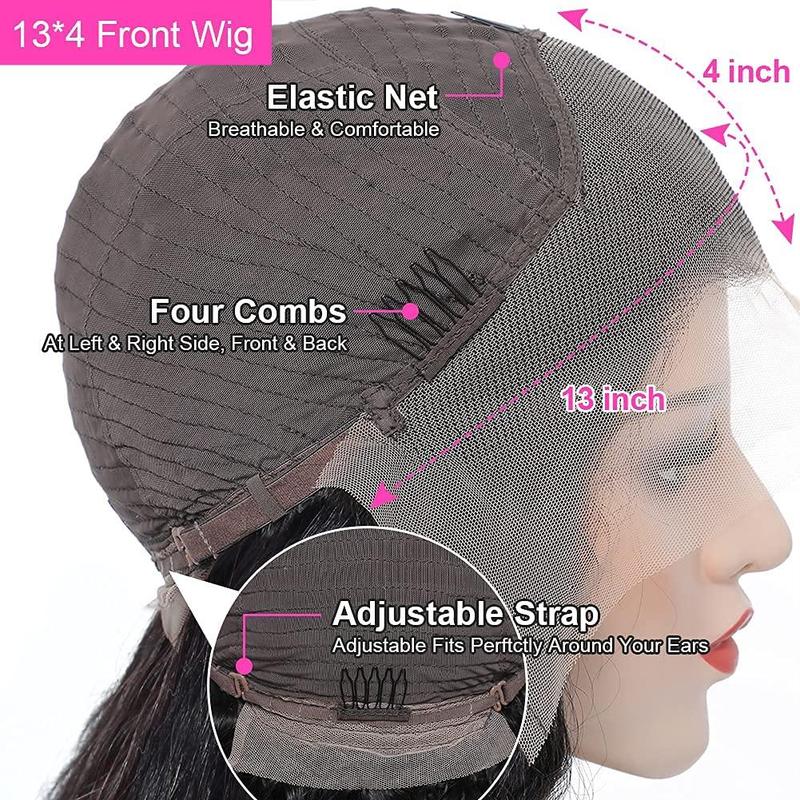 ·13x4 LACE FRONTAL WIGS HUAMN HAIR CAP: Human hair wig is medium cap size (22.5inch), 4 combs and adjustable strap, easy to install and adjust, breathable and comfortable, suitable for all black women.