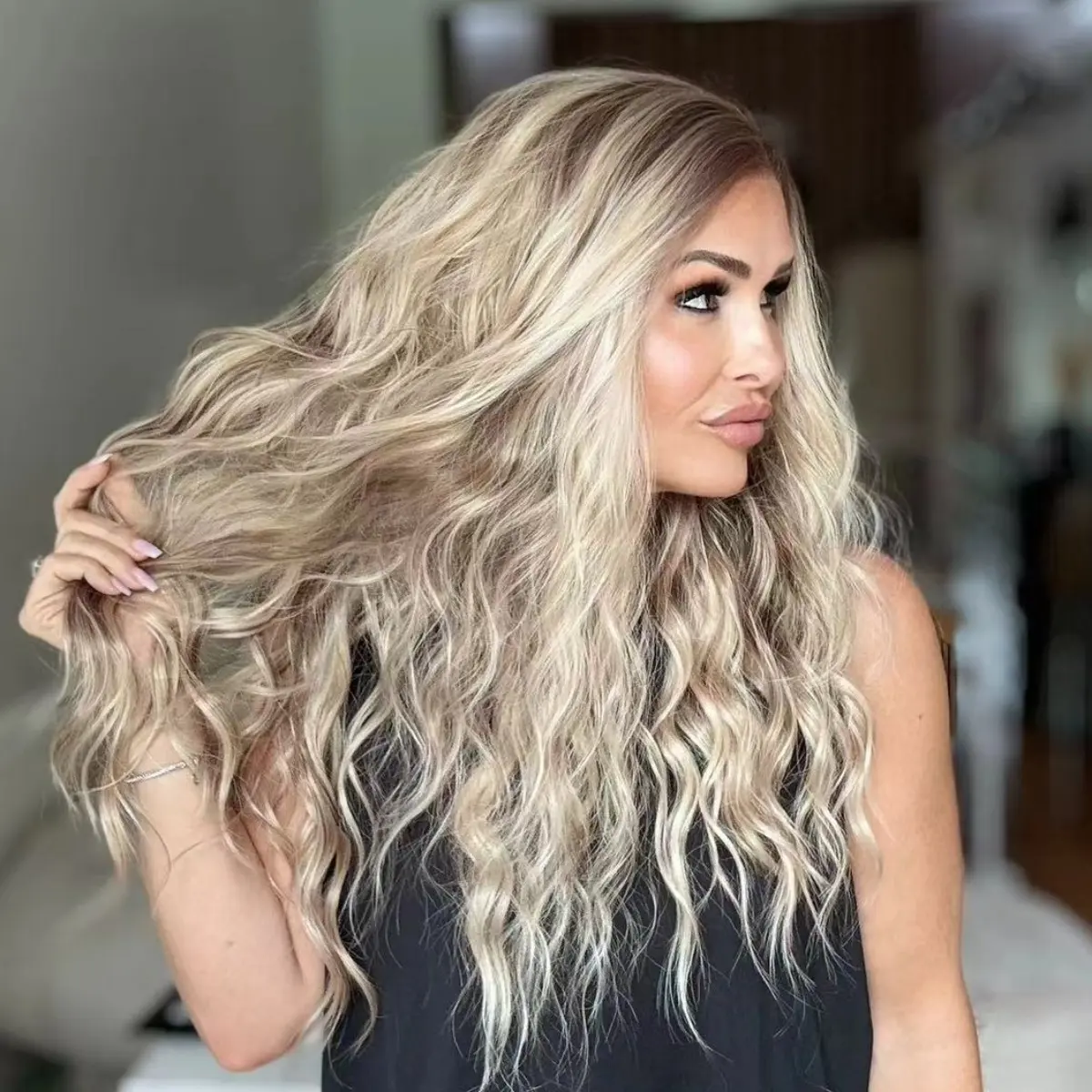Hair Color: Warm Blonde mix Brown lowlight with Brown Root
