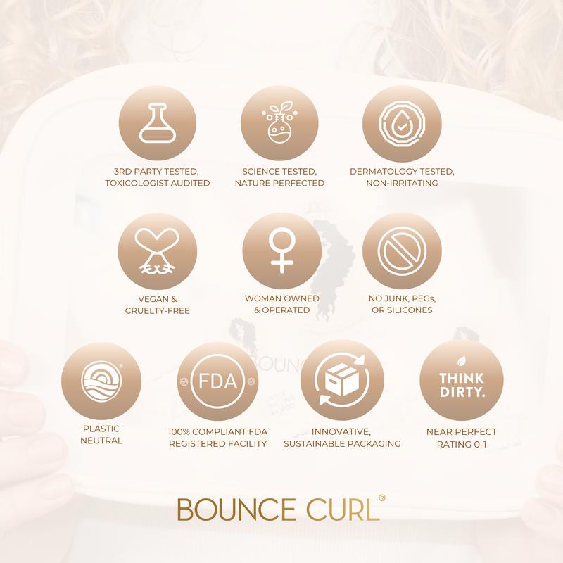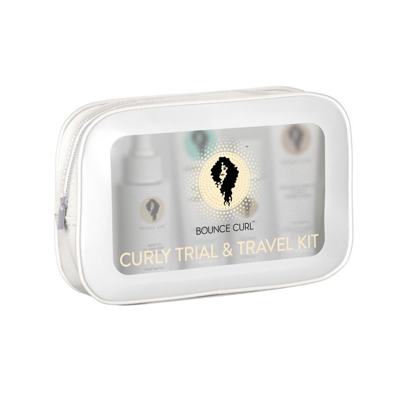 The Bounce Curl Curly Travel & Trial & Travel Kit is your go-to solution for nourishing and styling wavy and curly hair on the go.