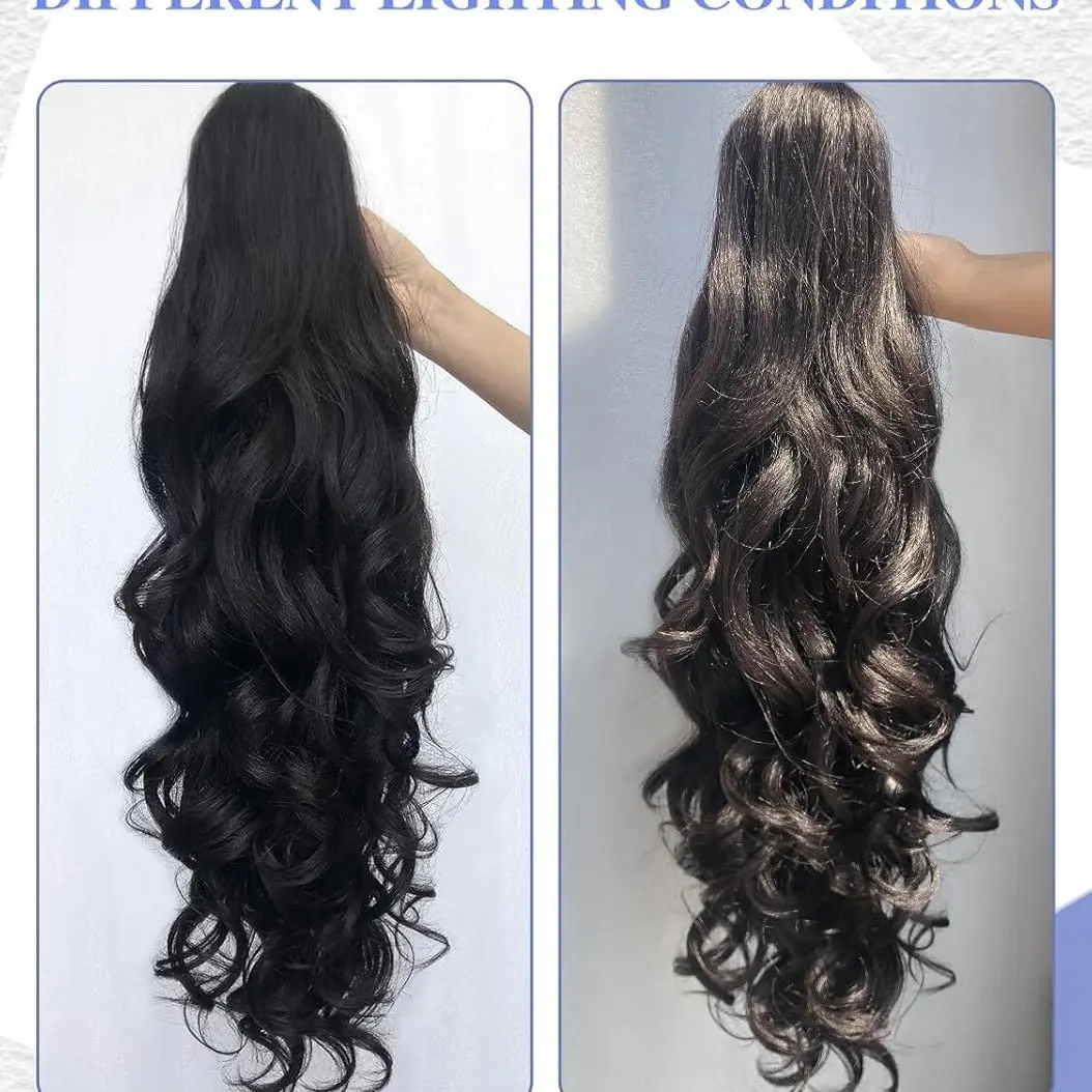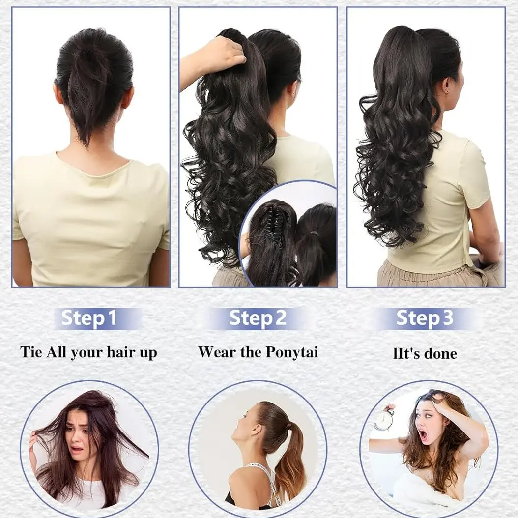 Β·γFluffy, Natural and SoftγThe 24" Long Wavy Ponytail Extension are made of high-quality synthetic fibers, which make the ponytail extensions look very natural, soft and fluffy. After receiving the package, take out the ponytail, shake it left and right, front and back, and spray some water or conditioning liquid to achieve a full and fluffy effect.