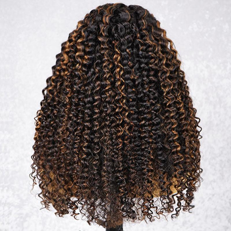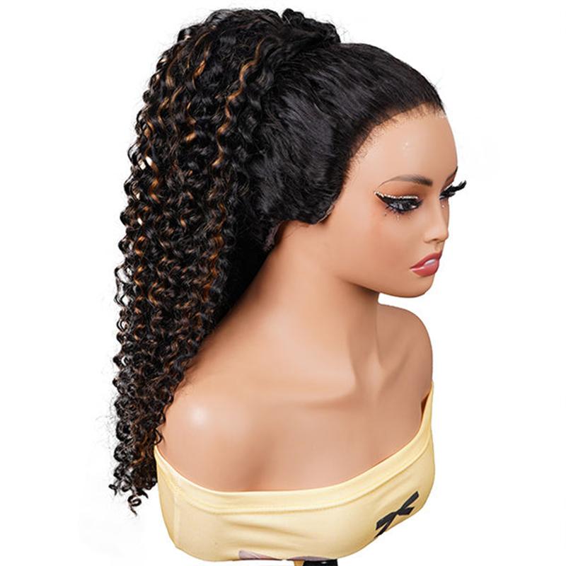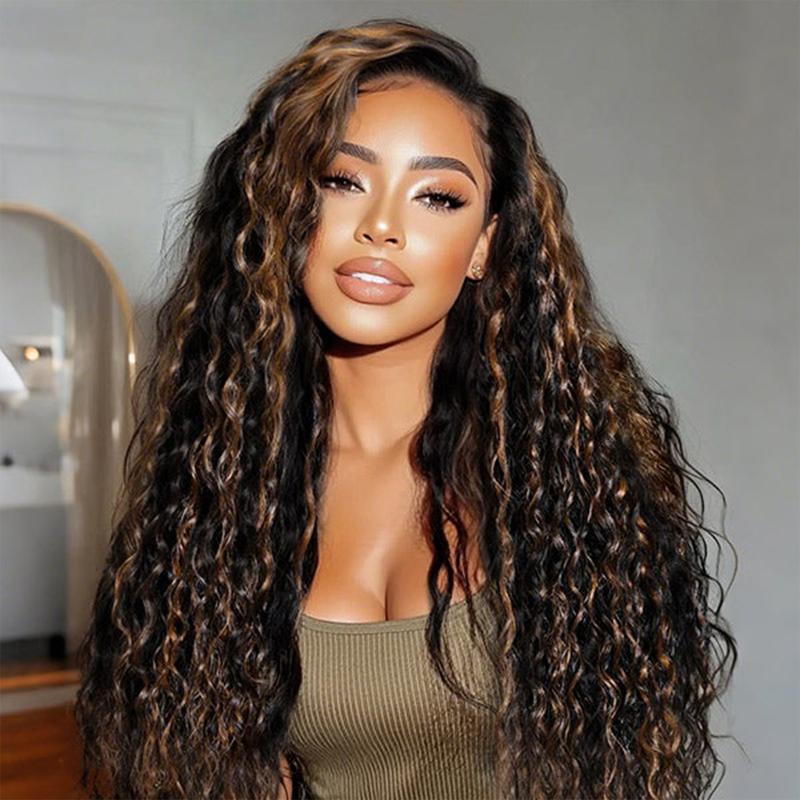 CurlyMe 3 IN 1 Water Wave Glueless Black Wig With Golden Brown Highlight Wear Go Half Wig