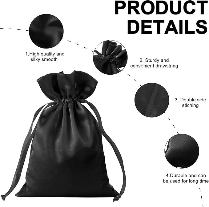 5. Satin Storage Bags for Packaging Wigs/Bundles/Hair Extensions-Black Color