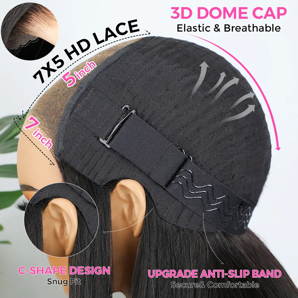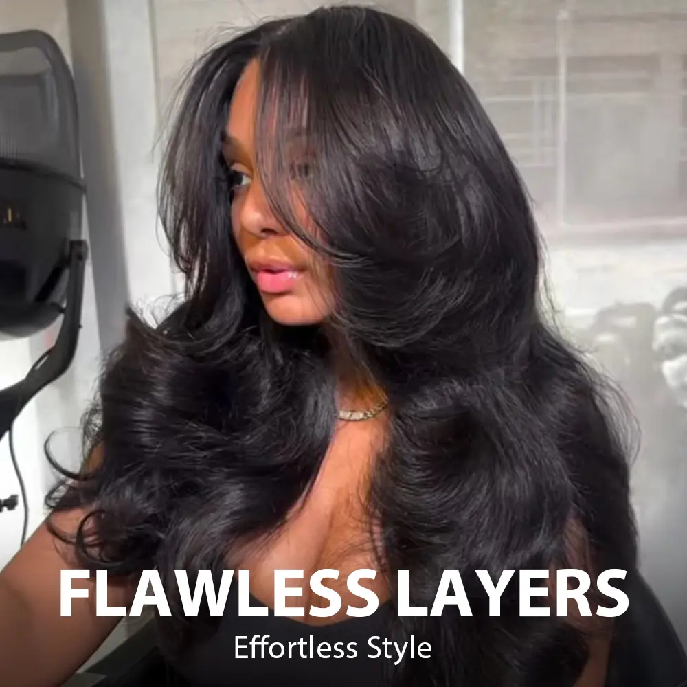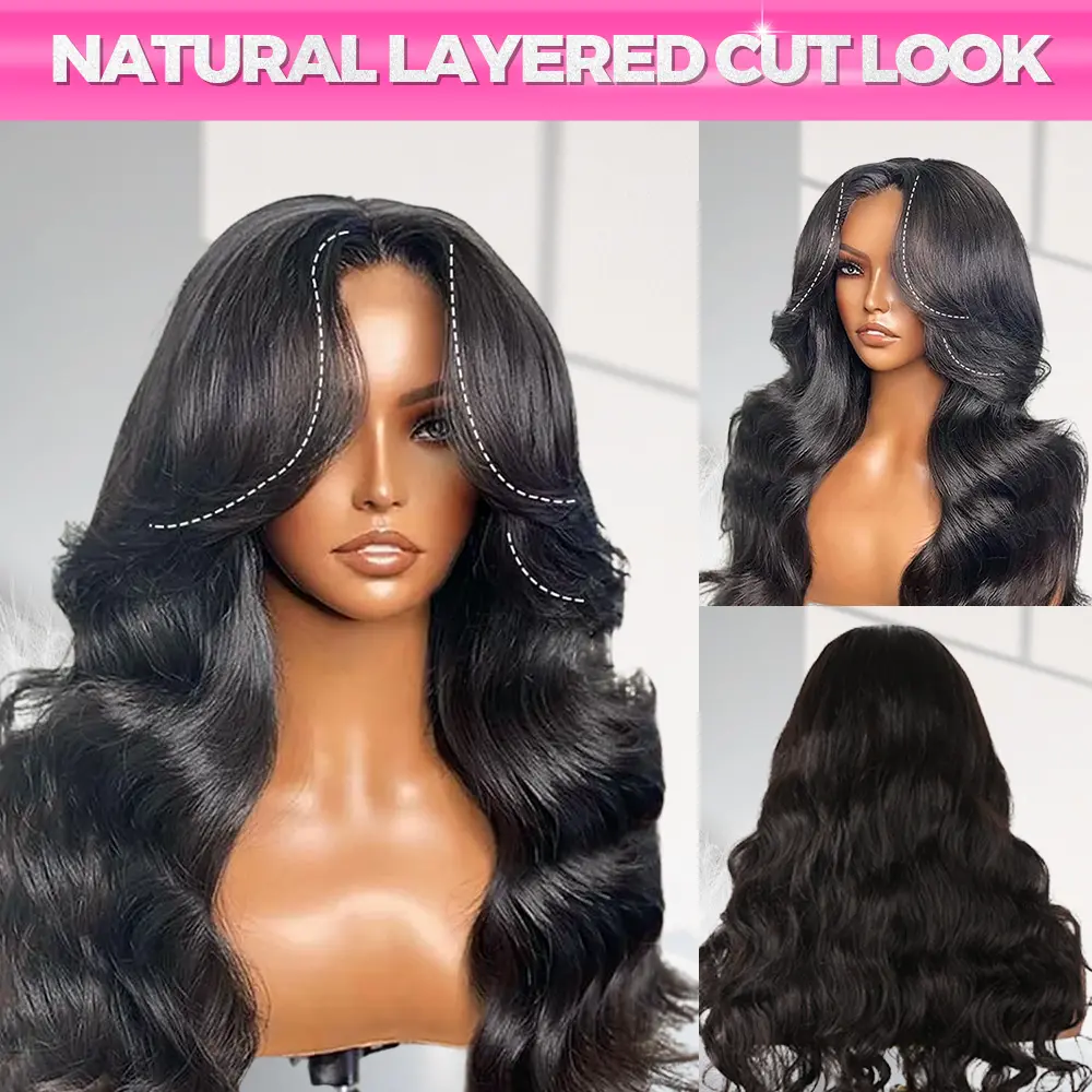 CurlyMe Layered Cut Pre-Bleached Body Wave 7x5 Pre-Cut HD Lace Wear Go Glueless Wigs