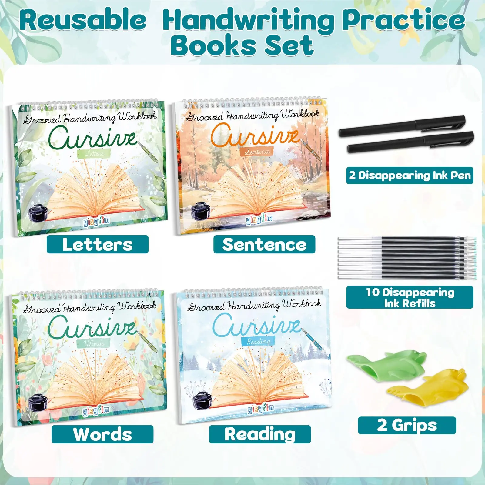 ·Cursive Writing Practice Kits: the 4 grooved cursive handwriting workbook kit included words, letters, sentences and reading, which set serves as a versatile cursive handwriting workbook for teens, kids, and even adults, making it a perfect tool for both beginners and those looking to refine their skills