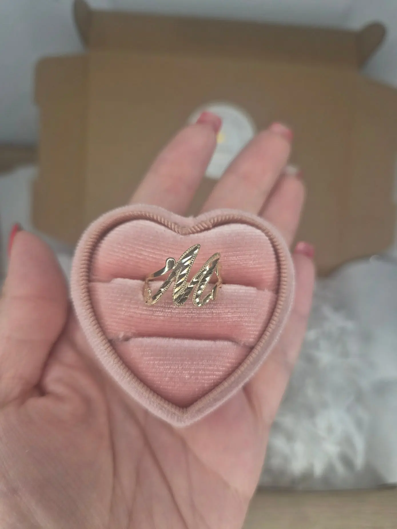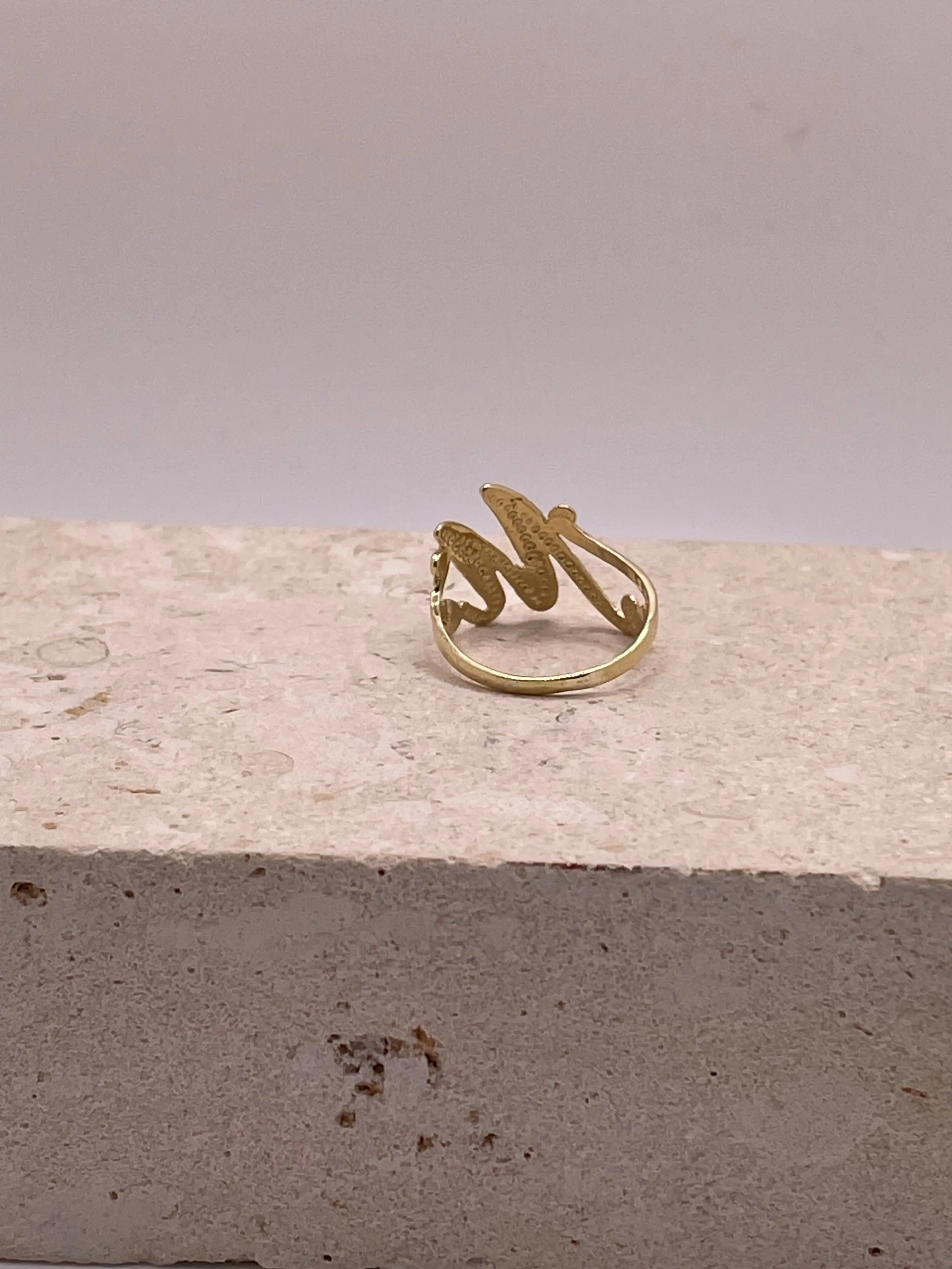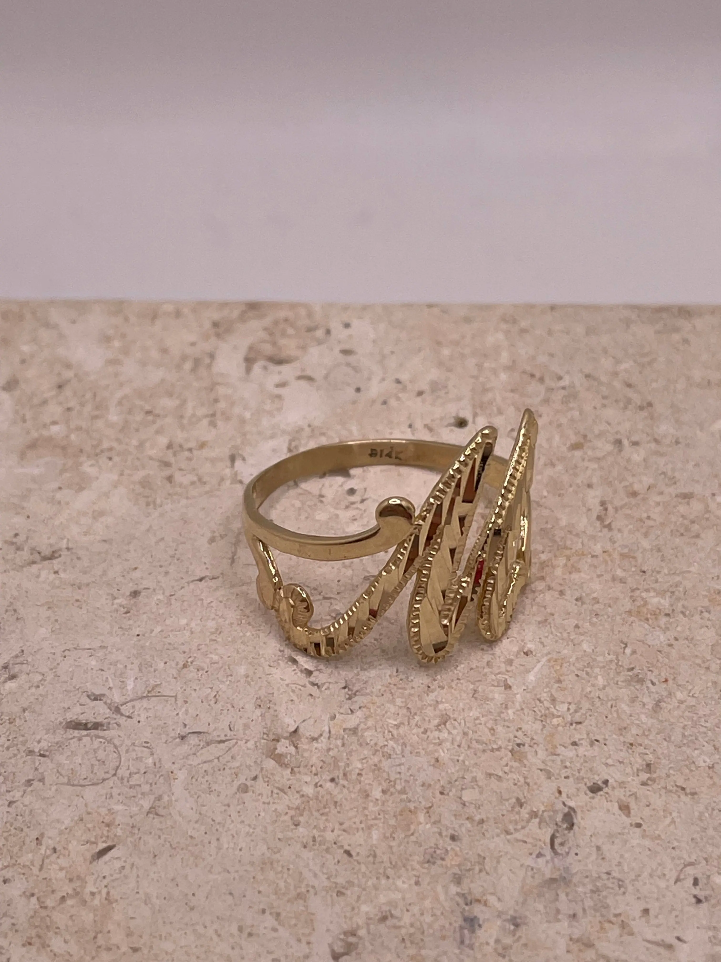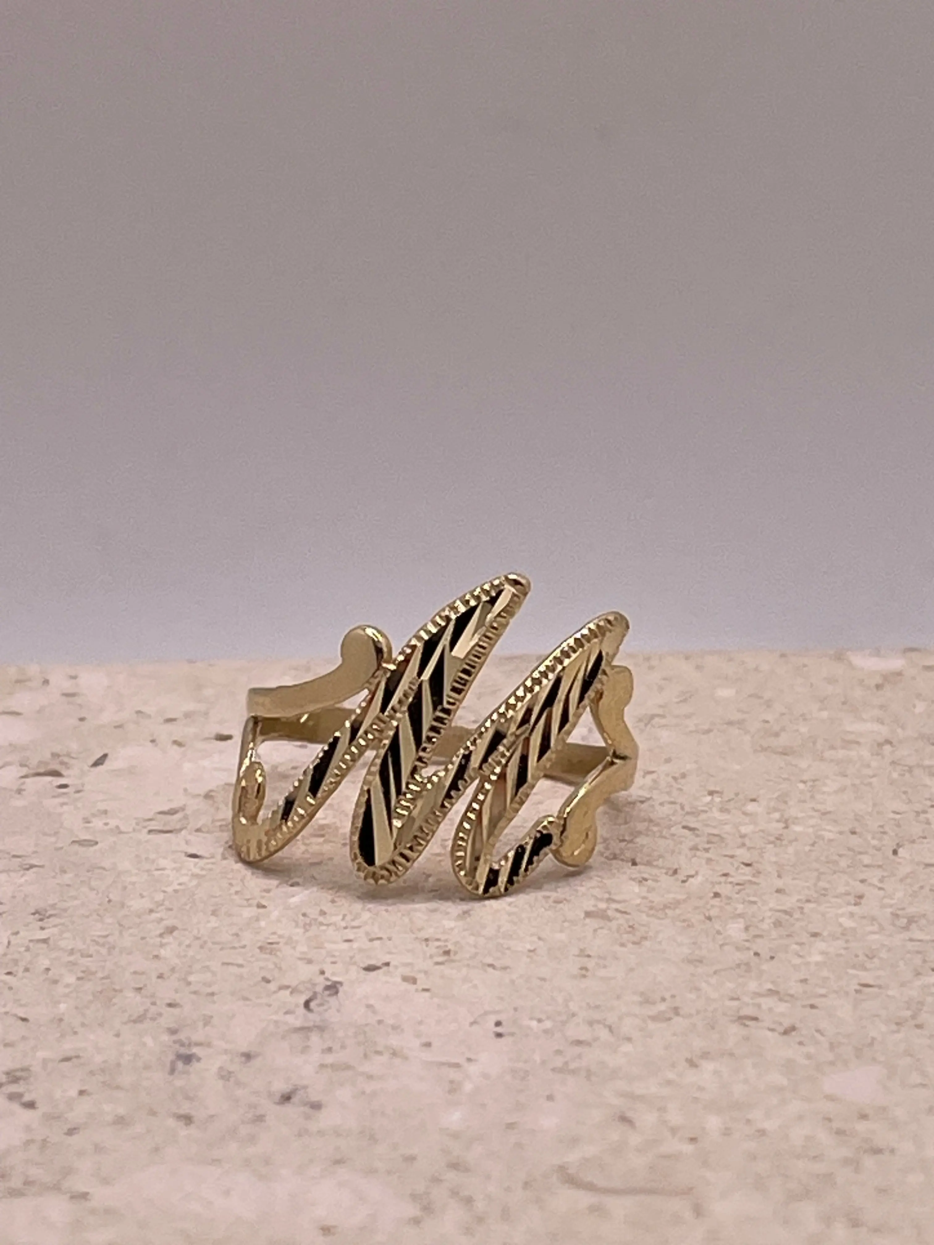 Celebrate your unique style with this stunning 14K gold cursive initial ring. Featuring a capital cursive initial adorned with a beautiful diamond-cut design, this elegant piece adds a personal and stylish touch to your jewelry collection.
