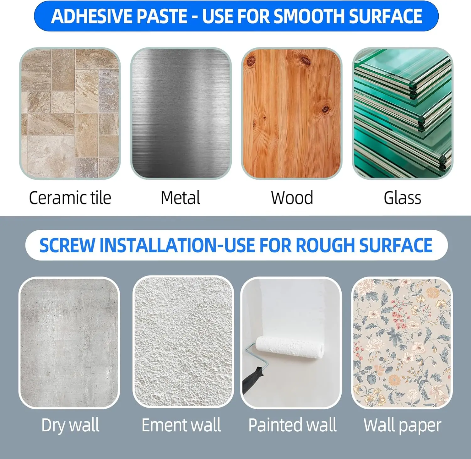 ·No Wall Damage and Suitable for most curtain rods or towel rods with Diameter ranging from 0.5'' to 1.18''. KIND TIPS: Pay attention to checking the wall. The aging wall itself cannot bear the weight of the curtains, and the sticky hooks are very sticky and may fall off along with the wall powder