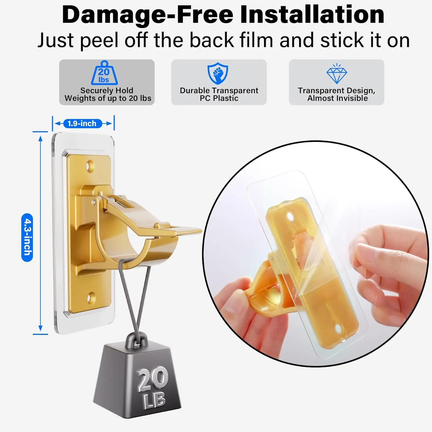 ·【Pack of 6 & Hold up to 20 Lbs 】- No Drill Curtain Rod Brackets made from the latest nano acrylic-gel pads and gold PC plastic, no rust, no turn yellow, no deformed. Incredibly adhesion sturdy enough to hold up 20 lbs. Just peel off the back film and stick it on. For the weight more than 20 lbs rod, multiple adhesive bracket hooks can help distribute the weight of the rod. You will get 6 packs no drill curtain brackets holders