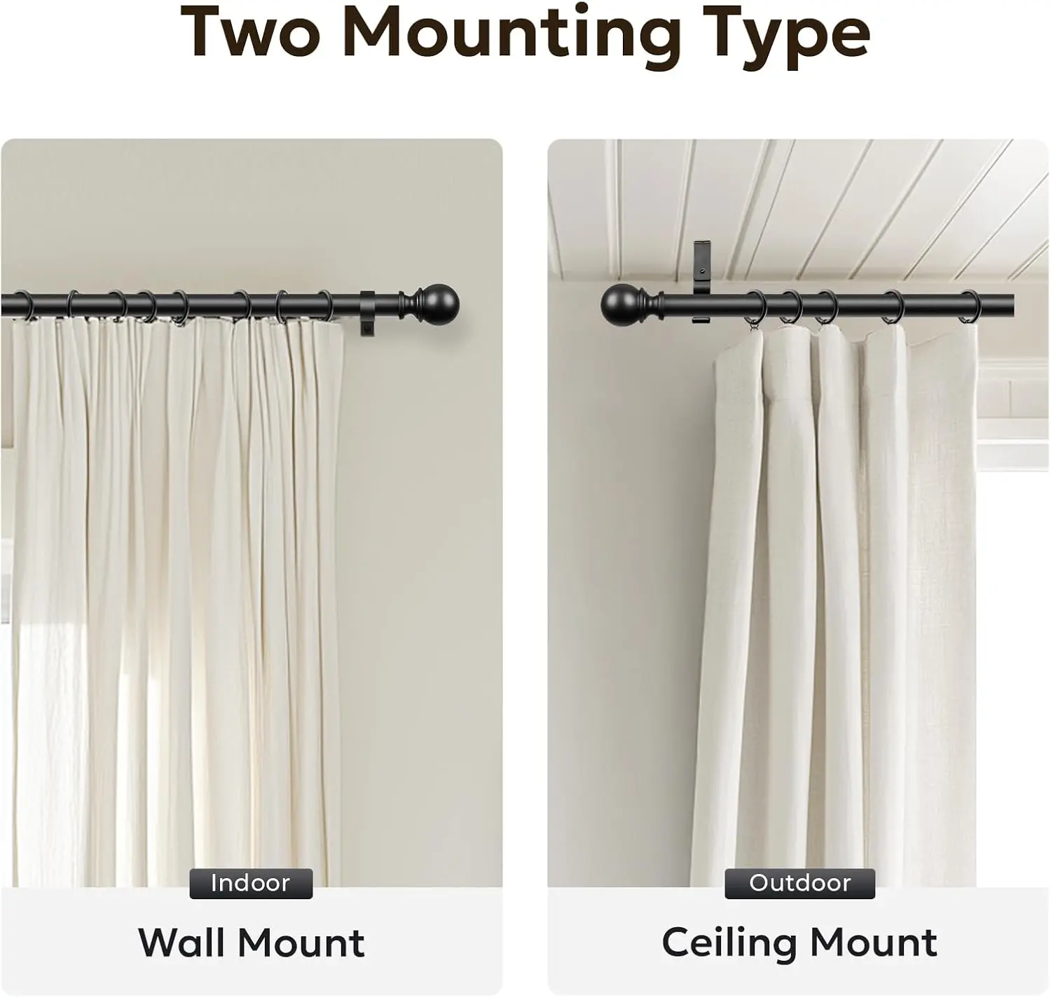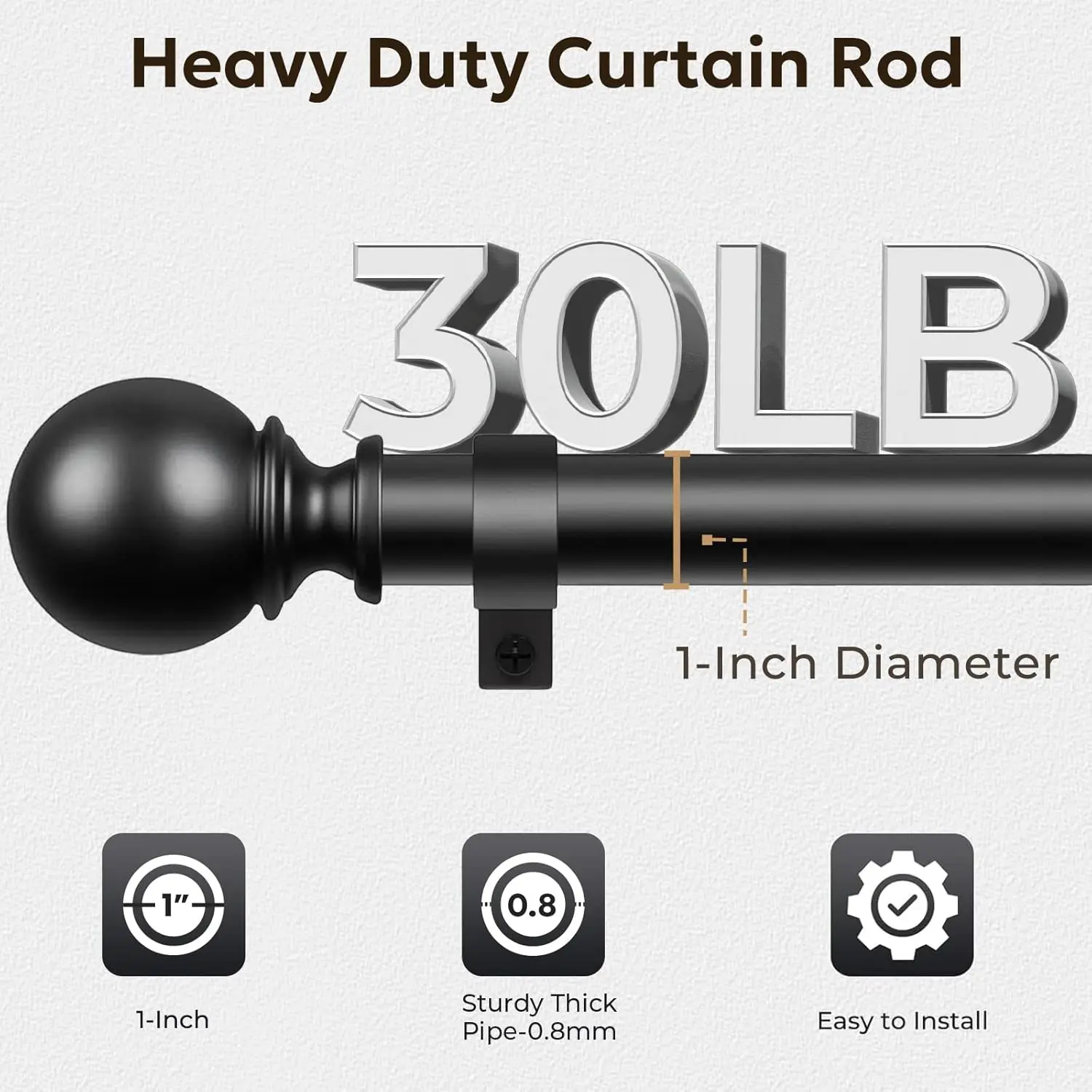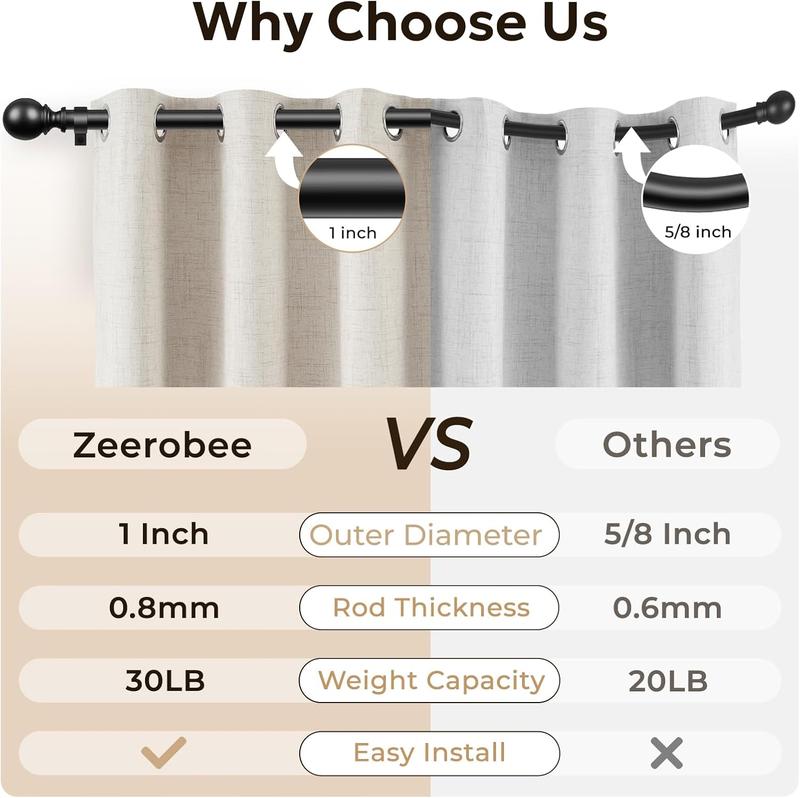 Inovaday Curtain Rods for Windows, 1 Inch Black Curtain Rod Set, Heavy Duty Drapery Rods with Adjustable Curtain Rods, Outdoor Curtain Rod with Ball Finials, Room Divider Curtain Rod for Living Room Bedroom Bathroom Interior Decoration Accessories