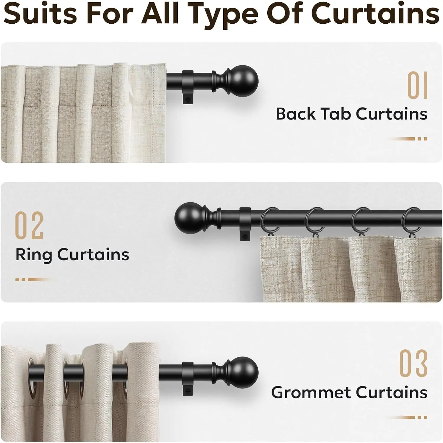 Perfect match with my new floor to ceiling drapes, they can even slide forward to allow space for sheers