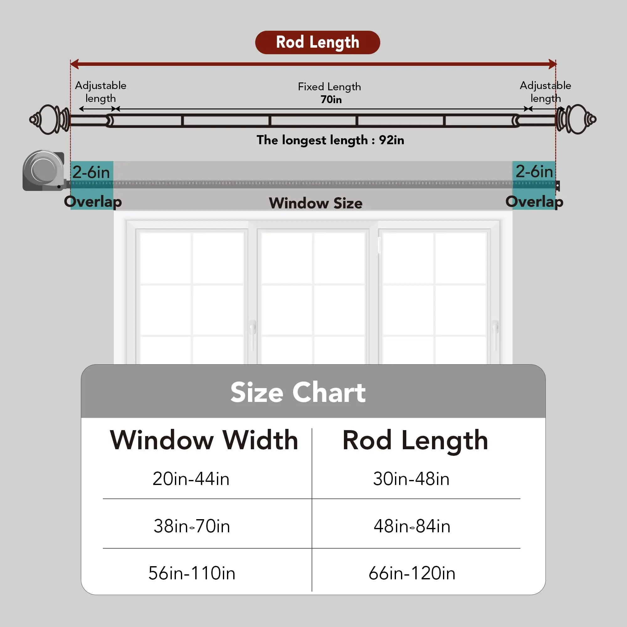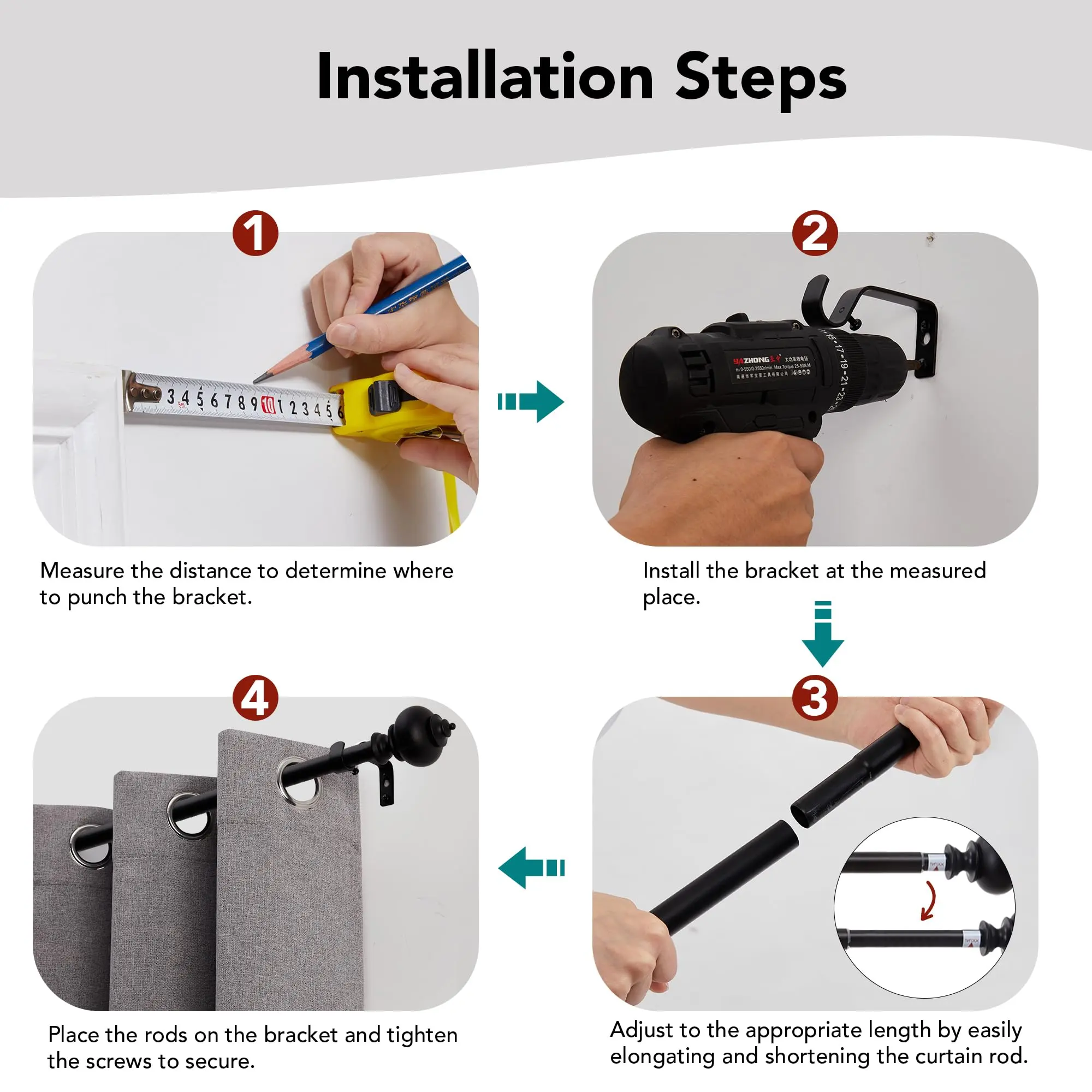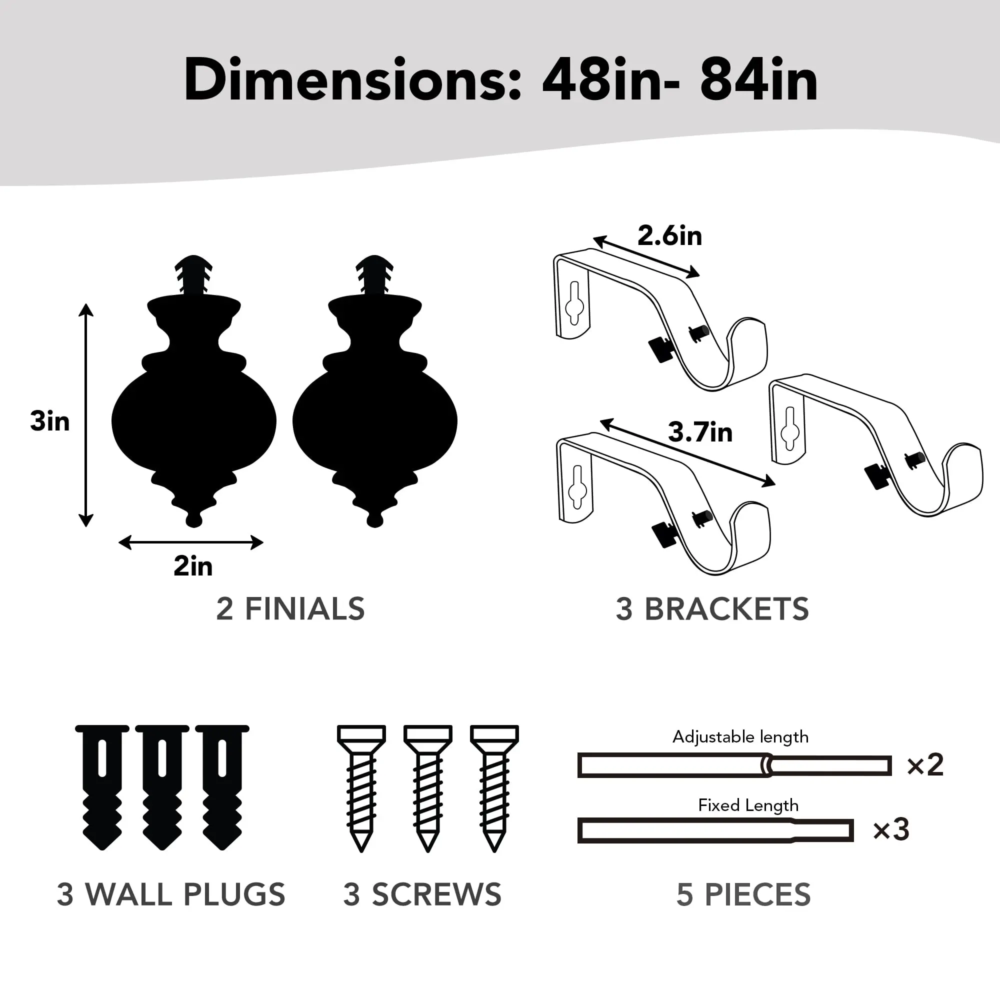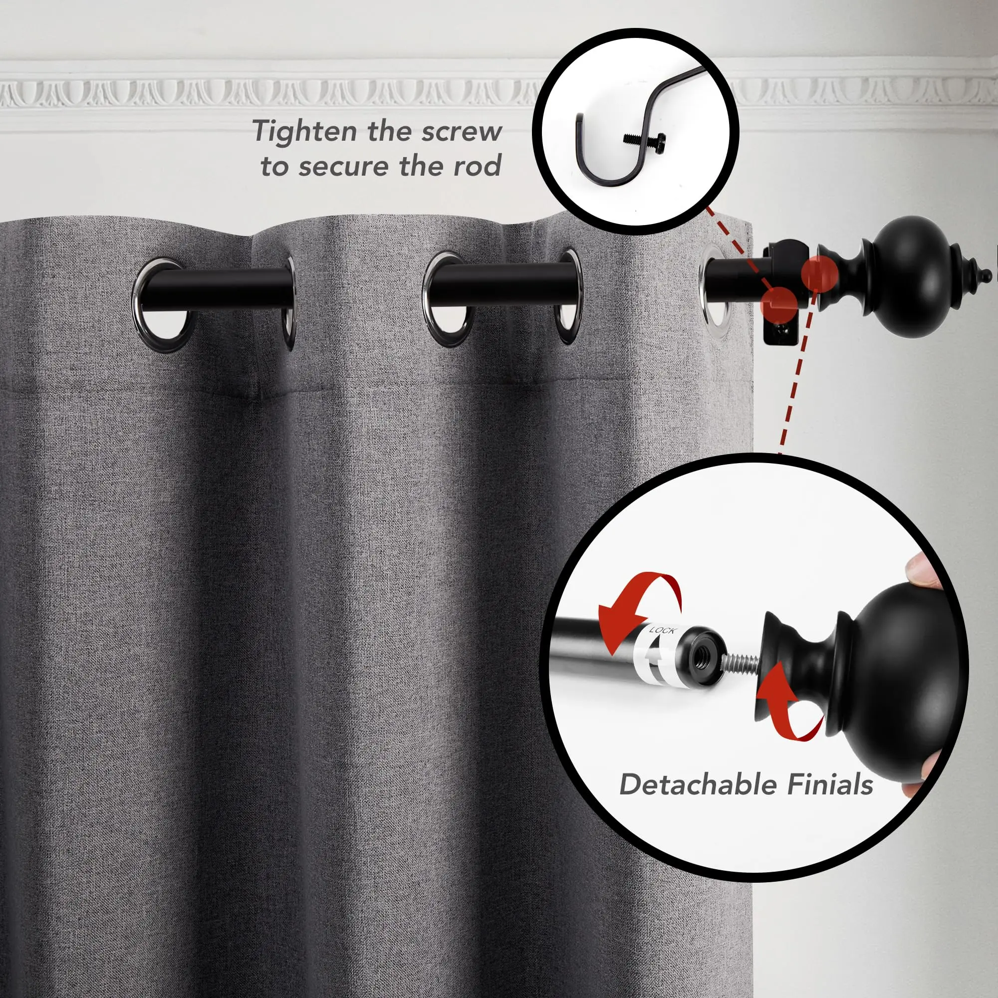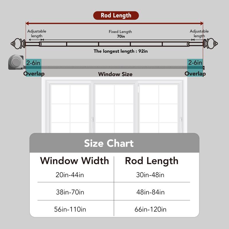 ·ADJUSTABLE LENGTH - Deconovo 3/4 inches diameter single curtain rod could be easily adjusted from 30 to 48 inches to fit your window.