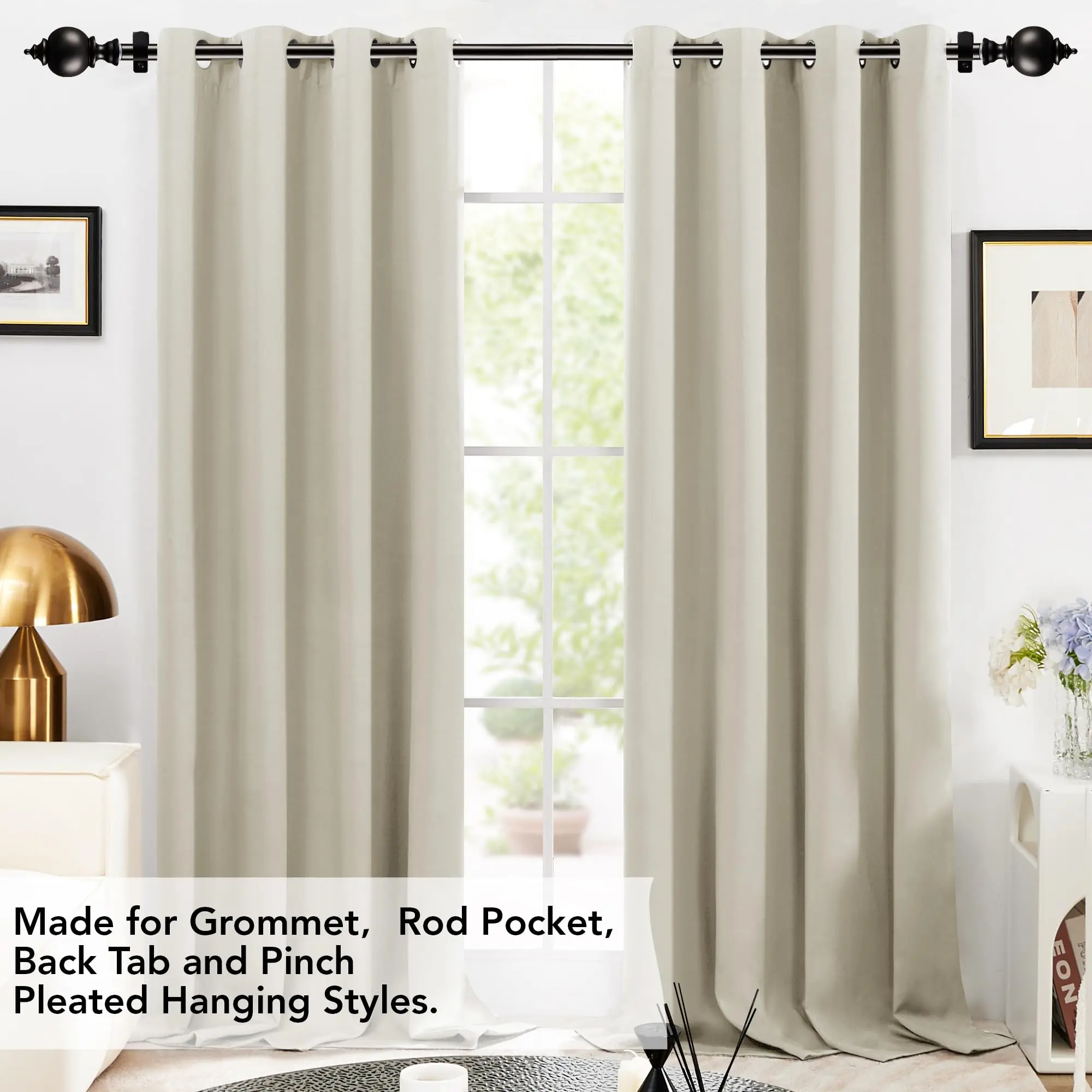 ·PRODUCT INFO - Installation instructions included, well package with 1 set of high quality of golden single window curtain rod, 2 beautiful finials, 3 durable mounting brackets, and other hardware.