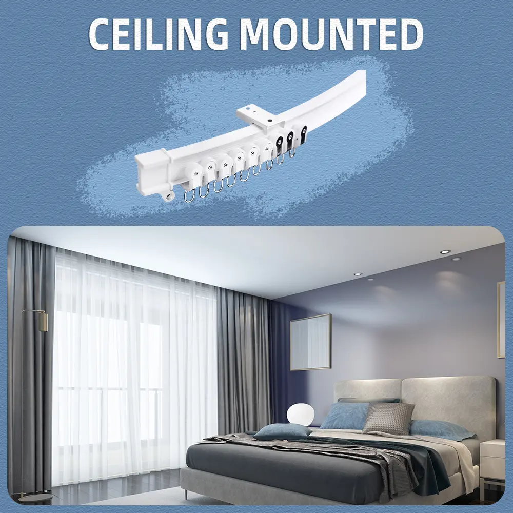 1.【Flexible and Durable】: This curved ceiling track system can be bent and twisted to fit various window shapes and sizes without any special tools. Made of durable PVC plastic, this curtain track is designed to be flexible but strong