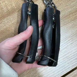 Easy to use. Good solid grip. Works on any pots and pans set since universal.