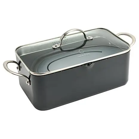 Curtis Stone 5.4-Quart Rectangular Multi Pot This versatile Rectangular Multi Pot makes it suitable for steaming, roasting, sauteing, braising, and baking. The built-in stainless steel induction plate makes it perfect for use on any cooktop and it can be used in the oven. Crafted with Curtis' Dura-Pan+ nonstick coating, this multi pot provides you the trusted results you expect from any of Curtis Stone's cookware, giving you endless options for creative, delicious meals. What You Get Rectangular multi pot Tempered glass lid Use & care guide