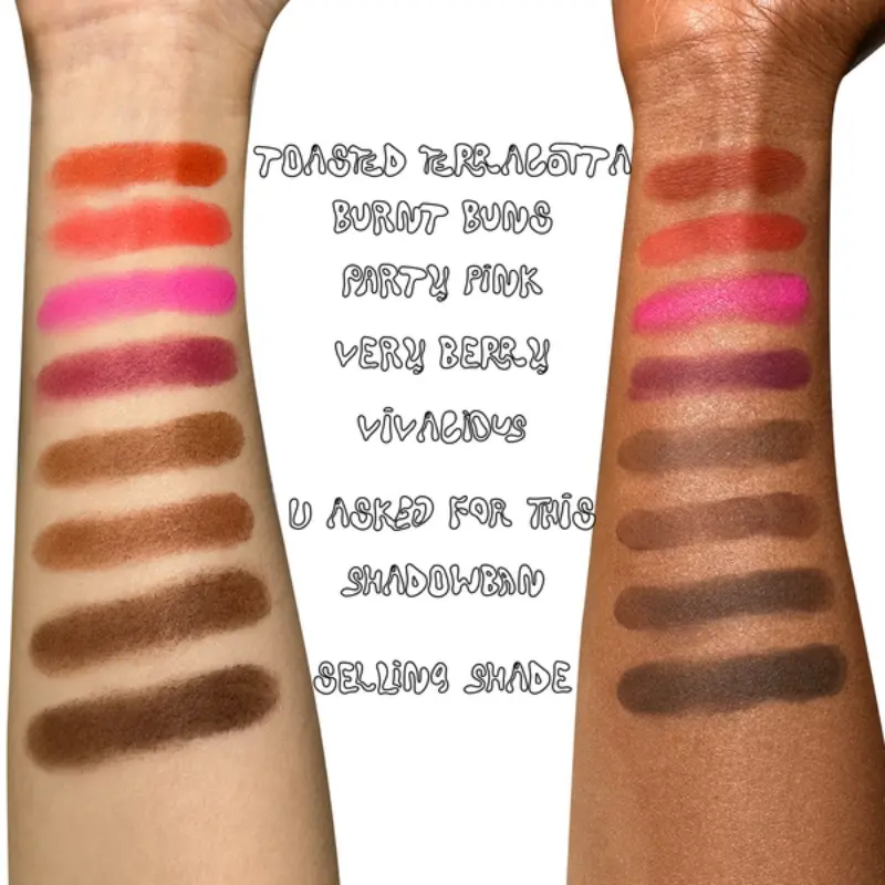 I’m actually kinda disappointed in this, when Mitchell swatched these it looked sooo pigmented on the first swatch. I have to keep dipping my brush in it over and over again just for a little to show up, the best thing about this was the brush that came with it😕