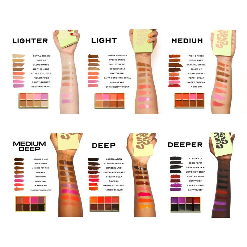 Love my curve case I’ve broken into it! 🥹 love the different crème shades! Extremely pigmented it’s easy to work with! Can be blended easily ! Also extremely versatile definitely can be used more then one way! In love with the lime green tray ! Definitely makes a statement in my vanity 🥴