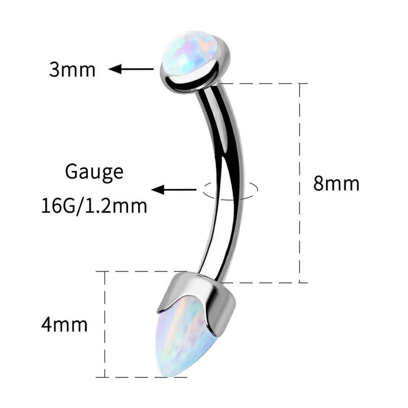 Oufer 16G Titanium Internally Threaded Opal Curved Barbell Rook Eyebrows Vertical Piercing Ring