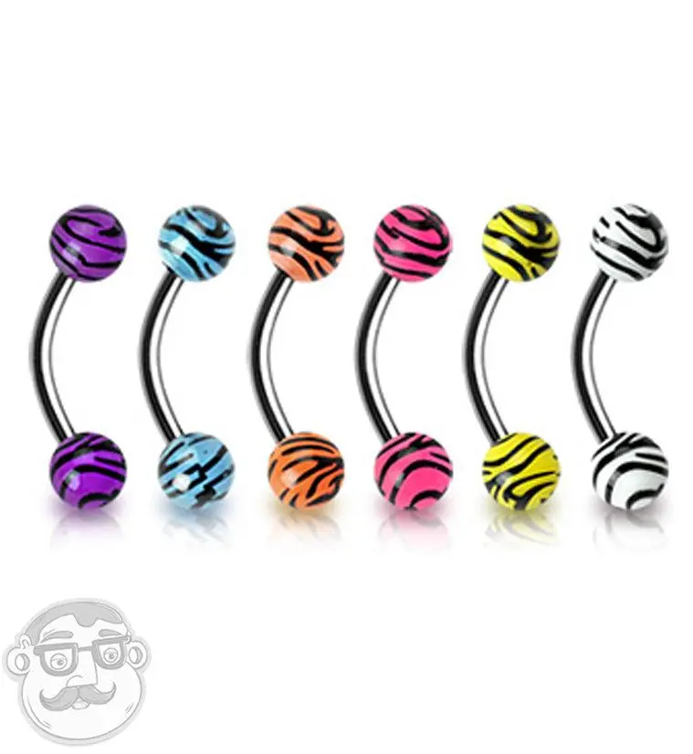 Urban Body Jewelry Tiger Print Steel Curved Barbell, for Sports & Outdoor Weight Training Fitness
