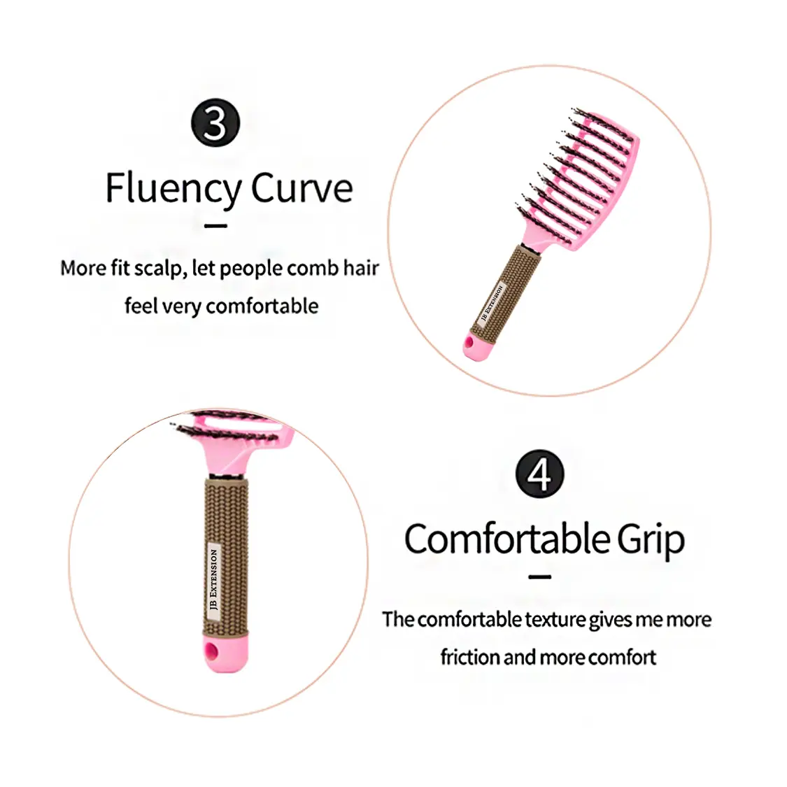 5. JBextension Curved Boar Bristle Hair Brush Professional Detangling Hairbrush Head Massage Comb Hairdressing Styling Comb Haircare Heatless