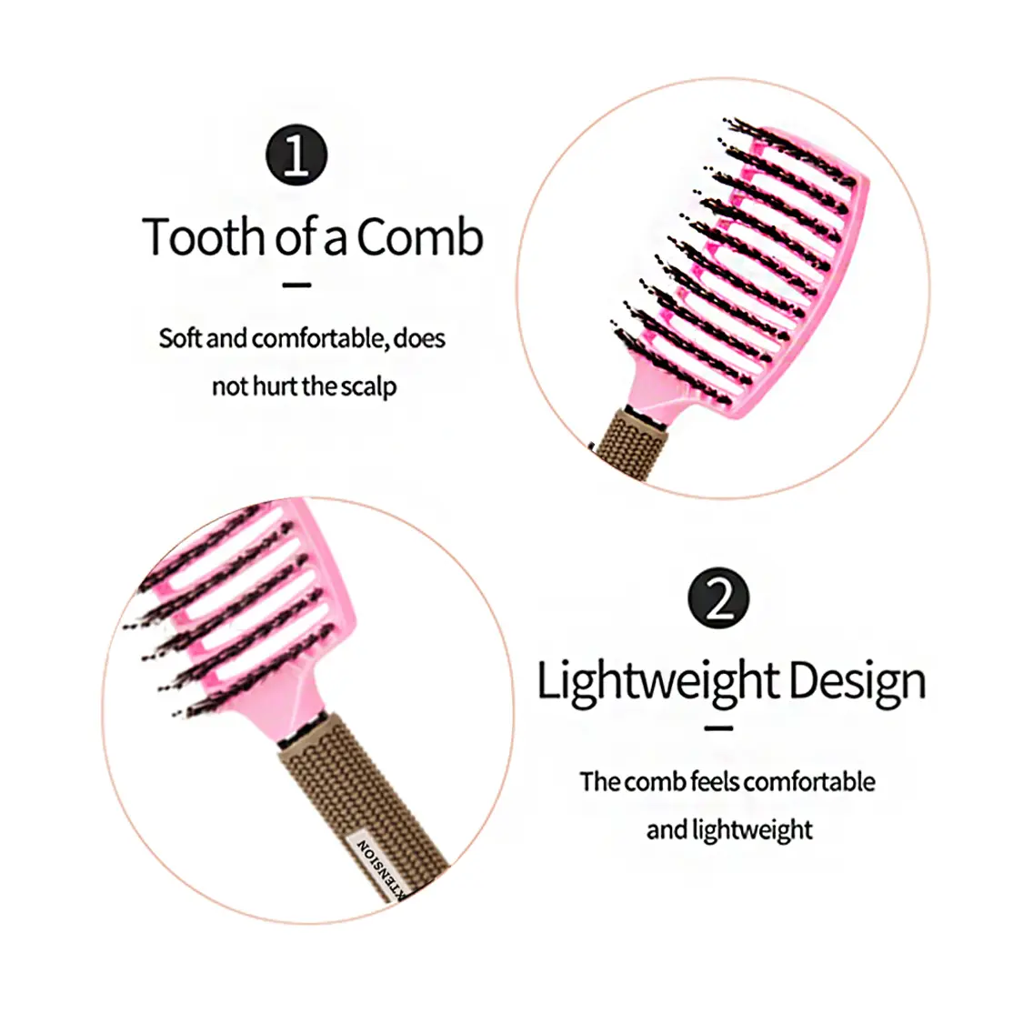 Features: Natural boar bristles promote healthy hair by disperse of natural oils from the scalp. Added nylon pin helps to get through thick and tangled hair and massage the scalp without scratching or pulling. The large head with a curved shape can holds more hair altogether and doing the massage while you comb your hair. Non-slip handle designed, comfortable grip and not easy to fall off. Come with a hole at the end, convenient for hanging up. Vent design helps prevent heat damage with a blow dryer and it is easy to clean without the residue left behind.