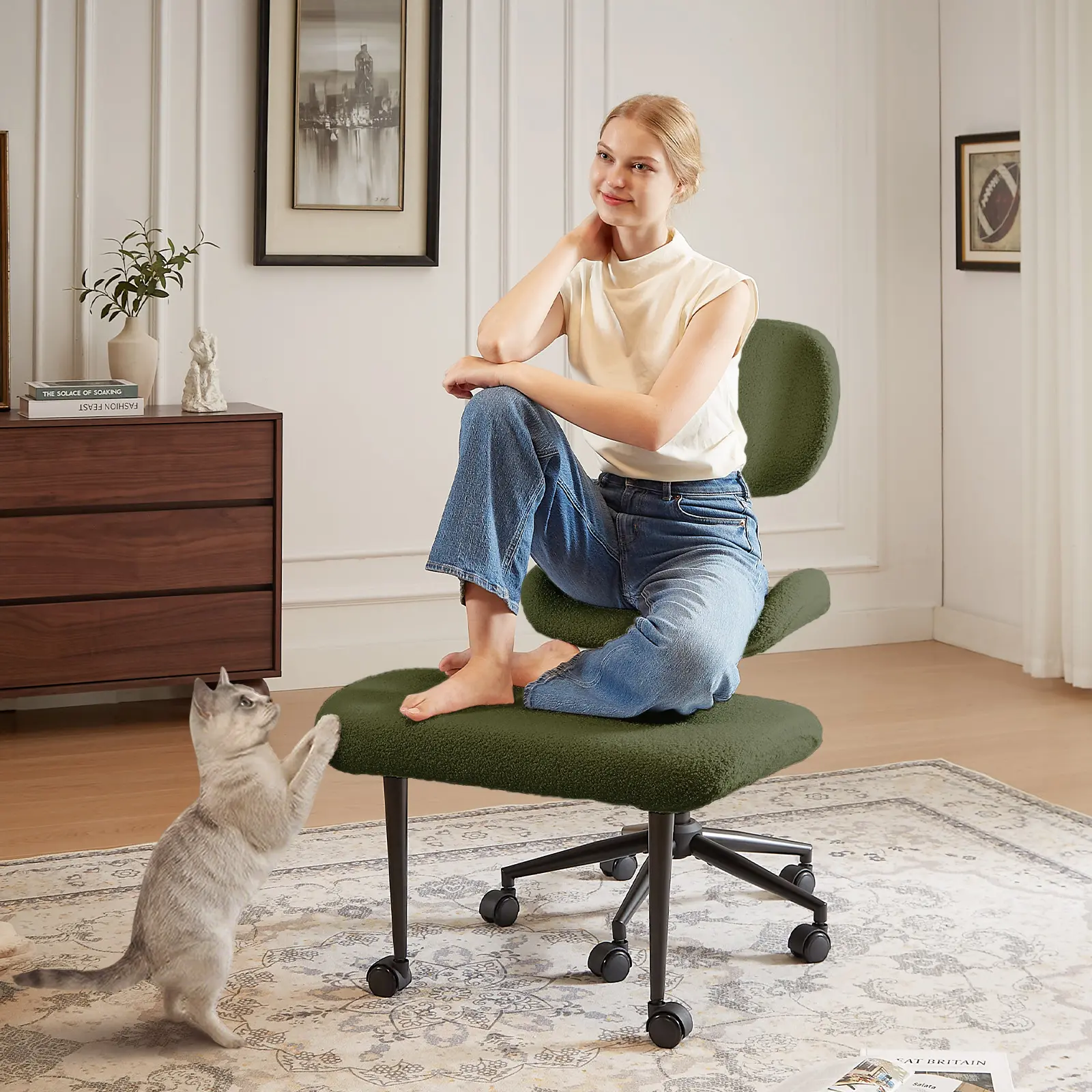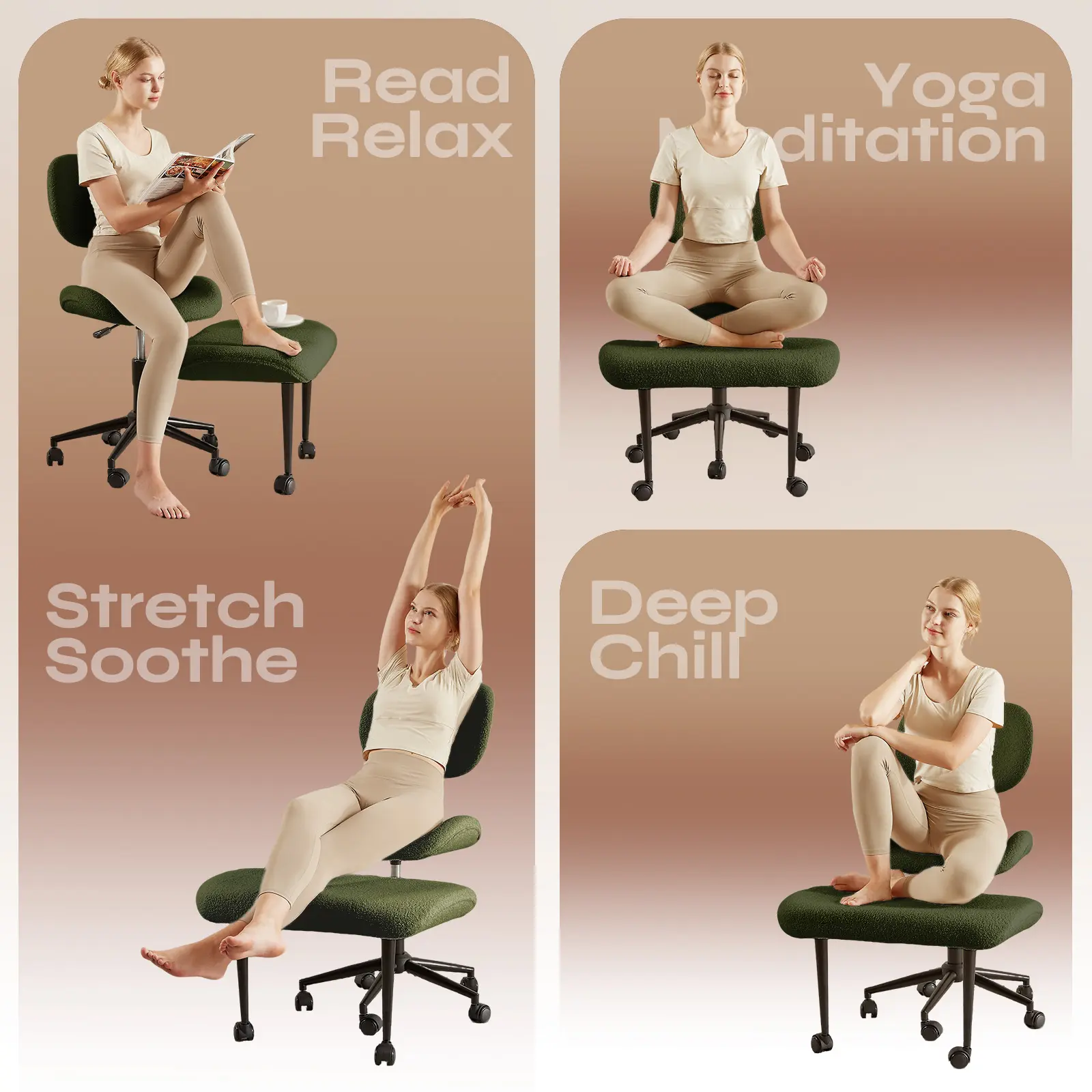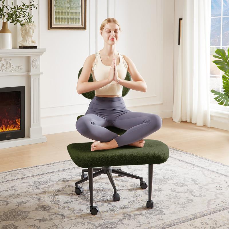·Pinmoco Upgraded Ergonomic Cross Legged Swivel Chair, Adjustable Height, Meditation Chair with Back Support: Unique 2-layer design and can be used for cross-legged, squatting, kneeling and other postures. It can be adjusted to different angles of your body, helps you relax the body, promote blood circulation and reduce leg swelling or numbness caused by prolonged sitting. It also helps alleviate mental stress and tension, promoting overall physical and mental relaxation.