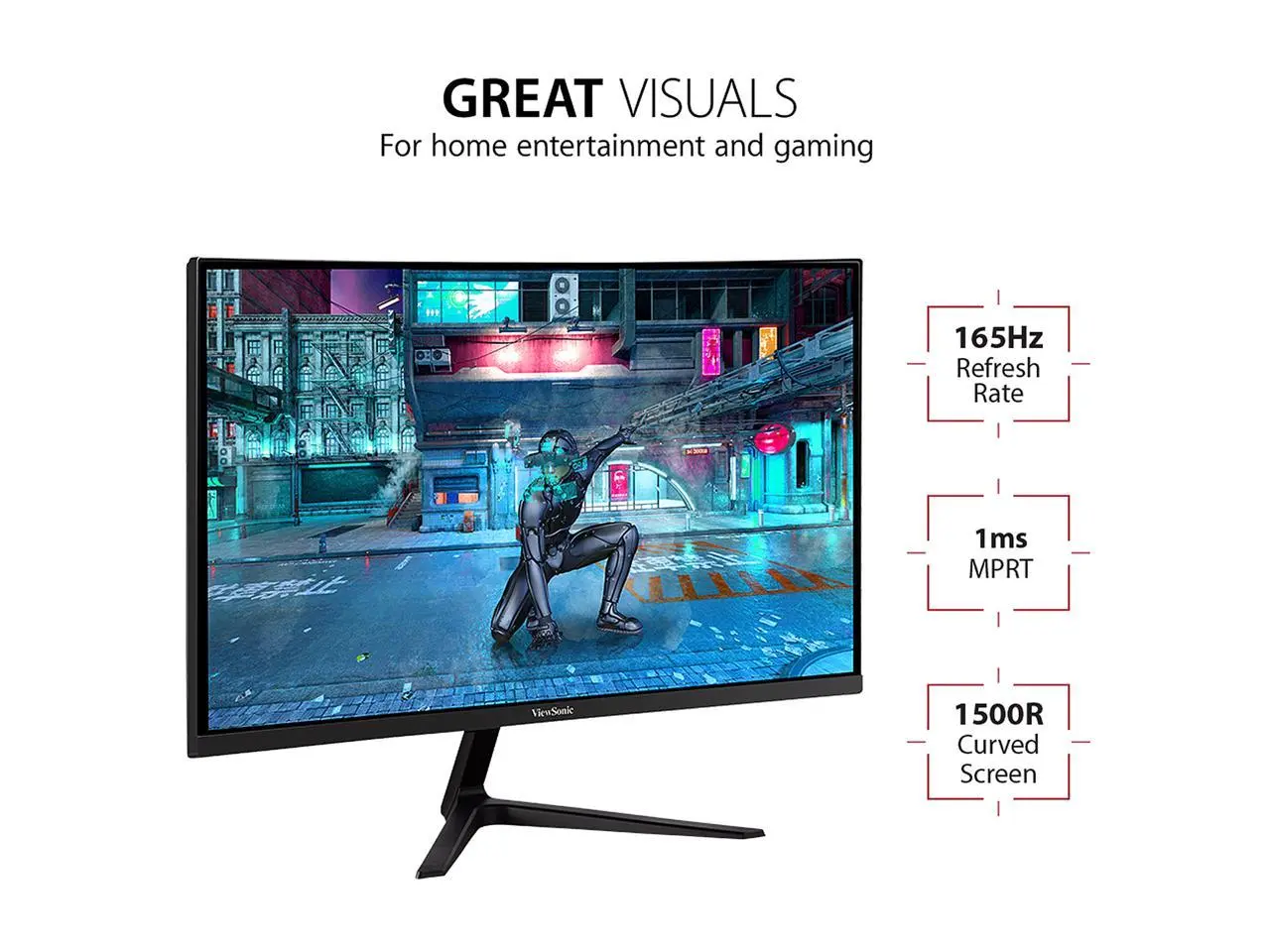 5. ViewSonic VX2718-2KPC-MHD 27 Inch WQHD 1440p 165Hz 1ms Curved Gaming Monitor with Adaptive-Sync Eye Care HDMI and Display Port