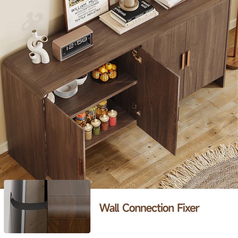·The sideboard is constructed from premium artificial wood, and to increase the cabinet's durability and prevent deformation, an I-beam reinforced wood board has been put at the bottom