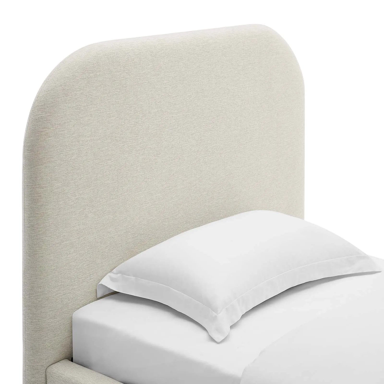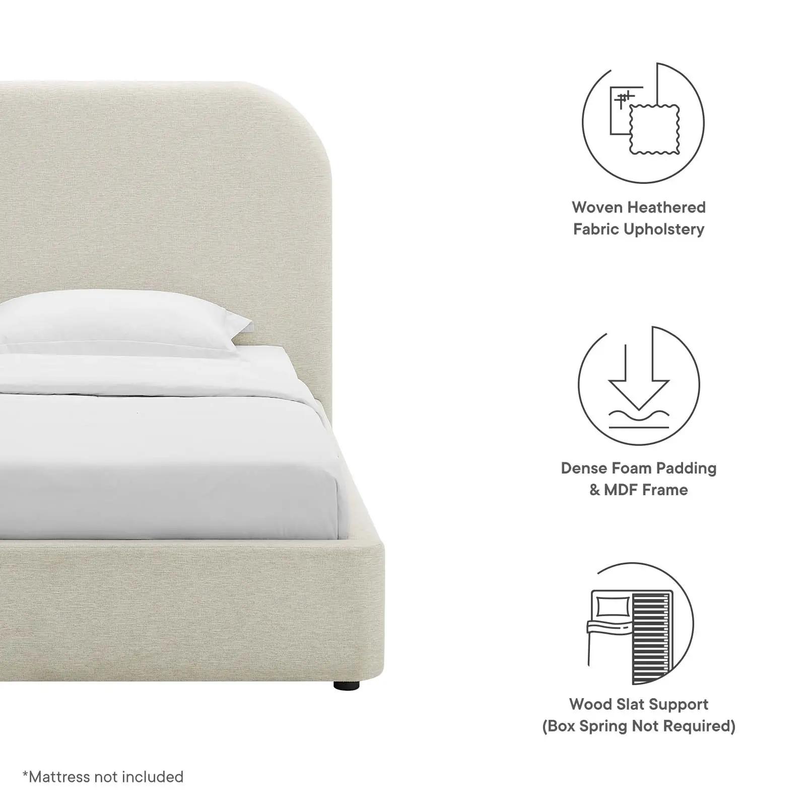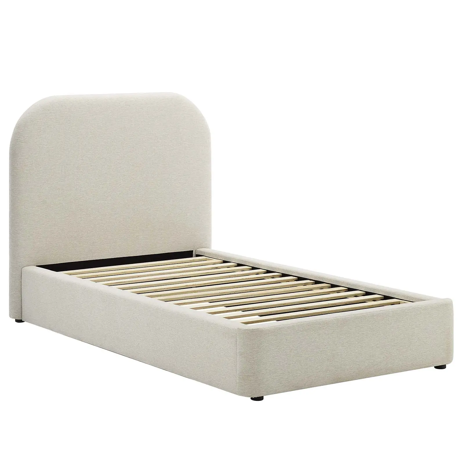 Modway Keynote Upholstered Fabric Curved Twin Platform Bed in Heathered Weave Ivory