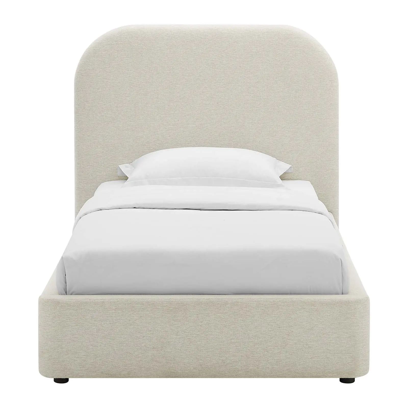 5. Modway Keynote Upholstered Fabric Curved Twin Platform Bed in Heathered Weave Ivory