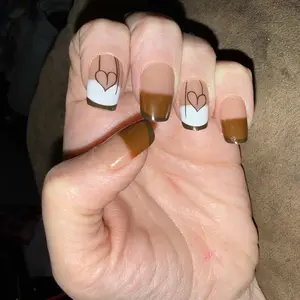 4. CurvLife Mocha Heartline French Press-On Nails – 30PCS Square Long Nude Brown Gradient Tips with White Accent Heart Design, Glossy Finish, Durable, Reusable, Easy to Apply & Remove, Perfect for Daily, Date & Gift Use