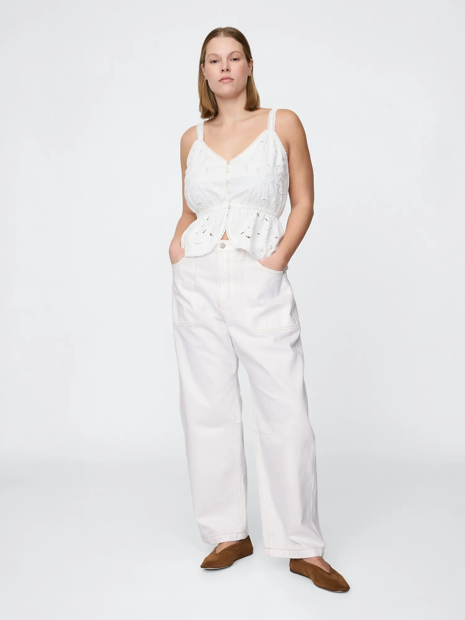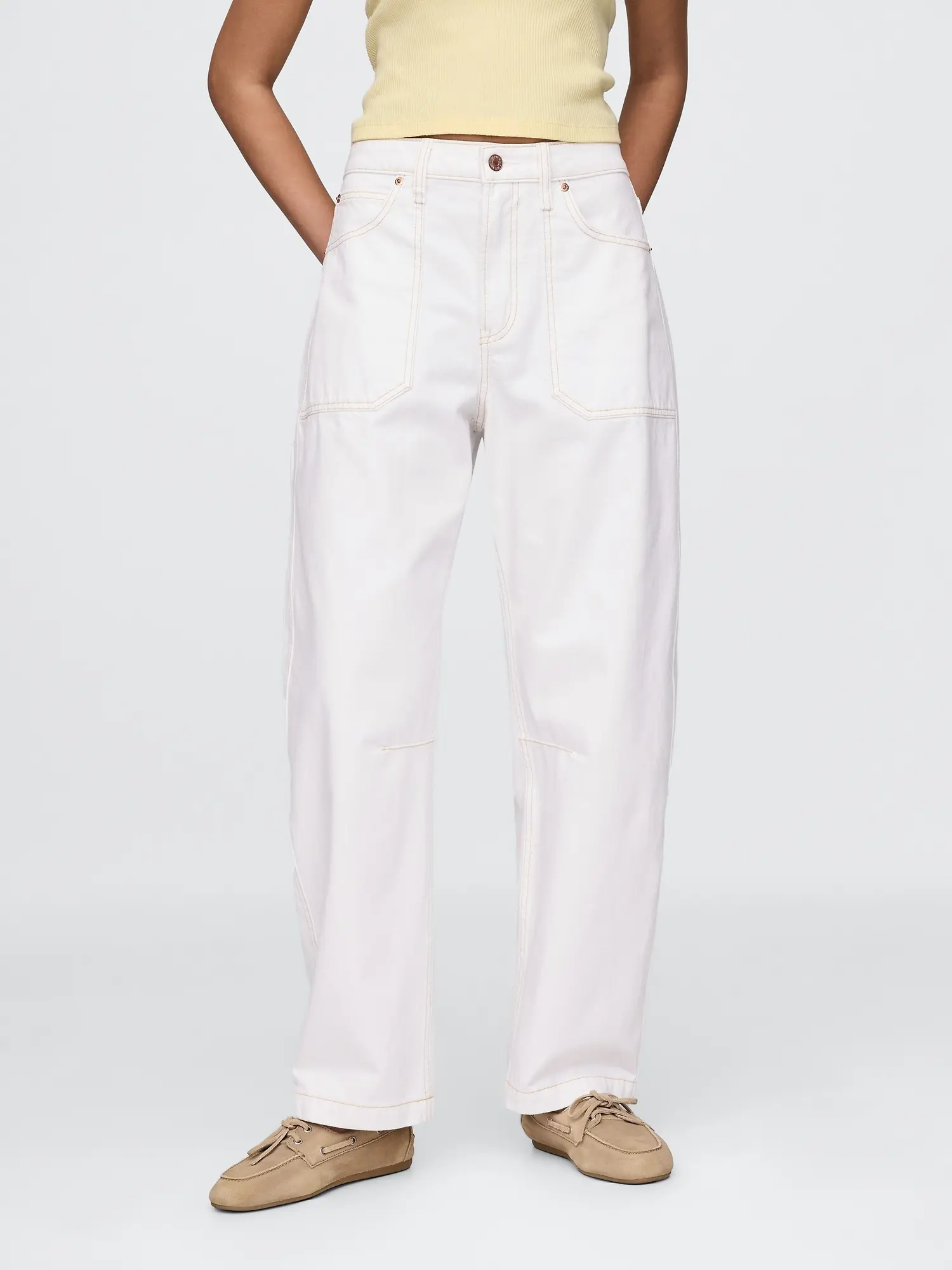 I’m so impressed, first pair of gap jeans in a long time! The barrel is perfect, very slight, great wash and fit is perfect. I’m 5’2” 120 and went with 26 short! These will get a lot of wear this season!