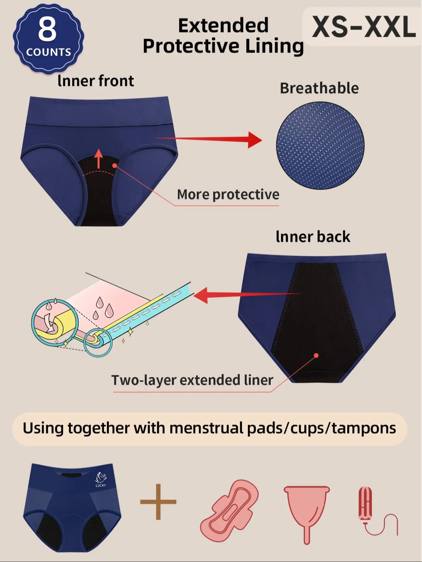 Panties are comfortable but not enough coverage in the front. Still had to wear a pad.