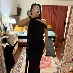 Bought this dress for a party and it fits surprisingly well. I was nervous about the sizing but it’s very stretchy and form fitting. I bought a medium. Still figuring out how the top part is supposed to go but overall good dress.