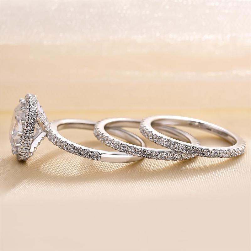 #Valentine's Dey Effinny 3.0ct Stunning Halo Cushion Cut Wedding Ring Set 3PCS,5A Grade Cubic Zirconia Bridal Set in 925 Sterling Silver, Gift Inspiration