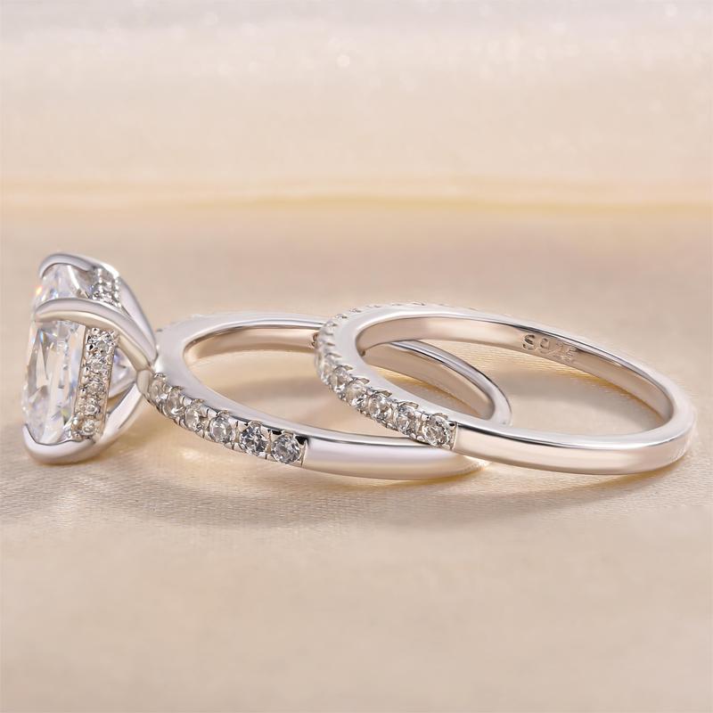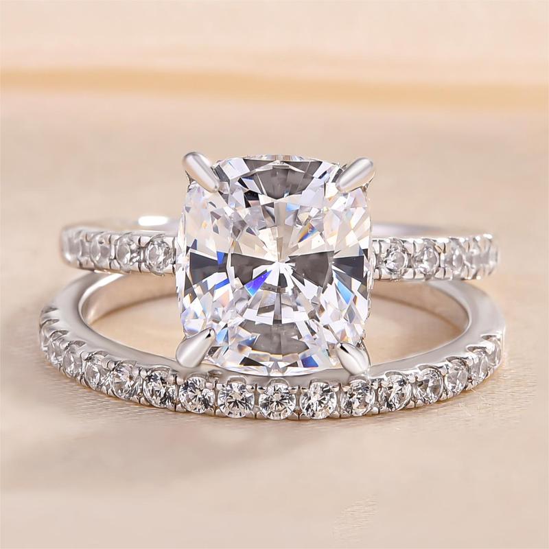 Effinny Stunning Cushion Cut Wedding Set#effinnyring #travelring #valentinesday #giftideas #silverring #cushionring