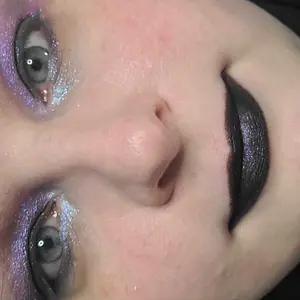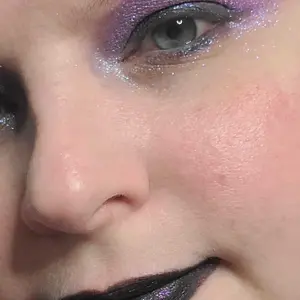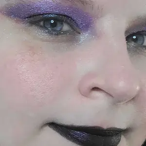 Beautiful black, eith that amazing purple color shifting glitter. The black smudges like CRAZY, so beware if you mask. Doesn't have much staying power. Lipliner is a must. I just used the lipstick for these photos.