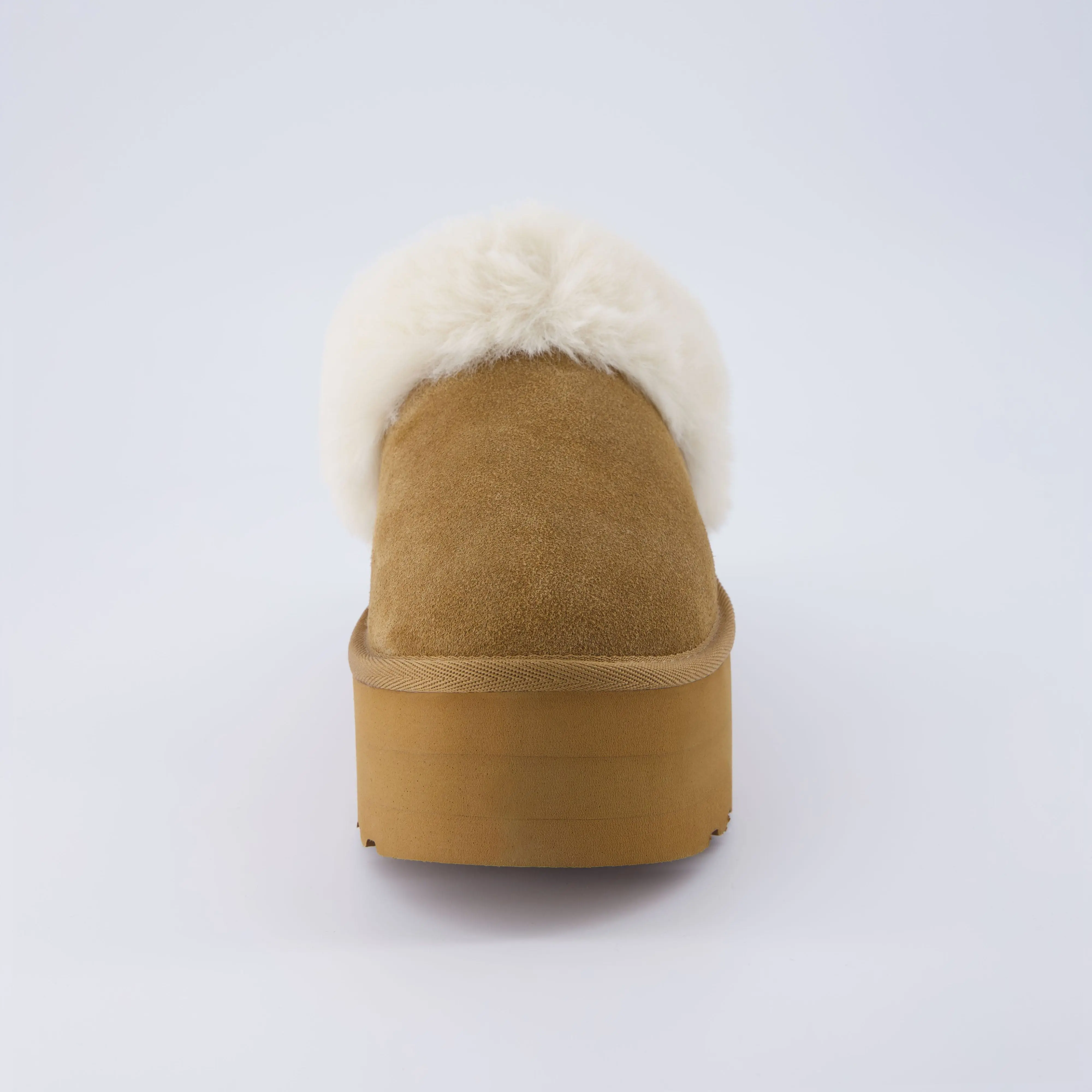 Meet Husky, your go-to mule for winter days. Crafted with smooth genuine suede leather and lined with silky soft faux fur, this platform mule is supremely cozy and water-resistant. 🌨️