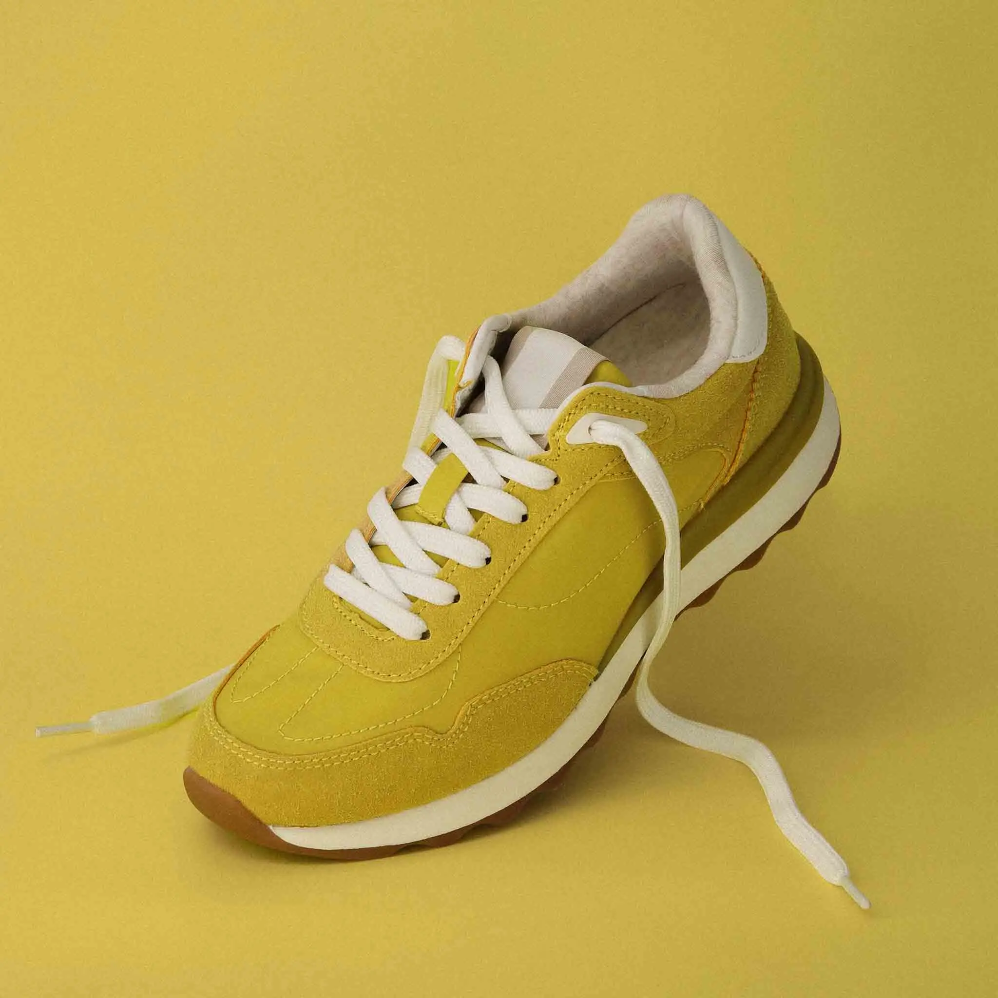 A retro runner vibe with suede overlays and fresh color combos. The Cushionaire Women's Kicks Fashion Sneaker offers a sporty look perfect for daily wear. Available in bold yellow, go-with-anything neutrals, and everything in between. This sneaker blends sporty energy with Cushionaire comfort, making it ideal for grocery runs or weekend hangs.