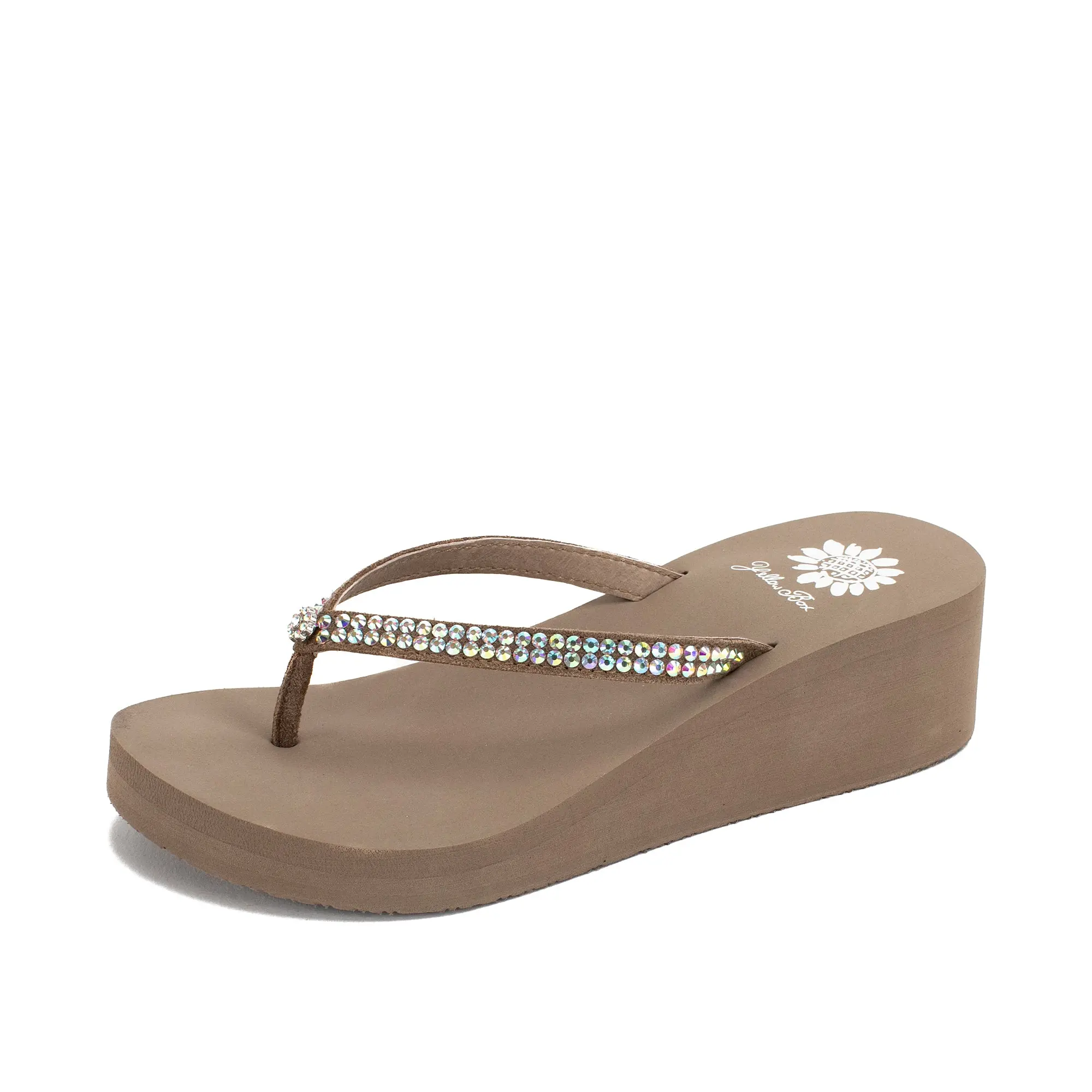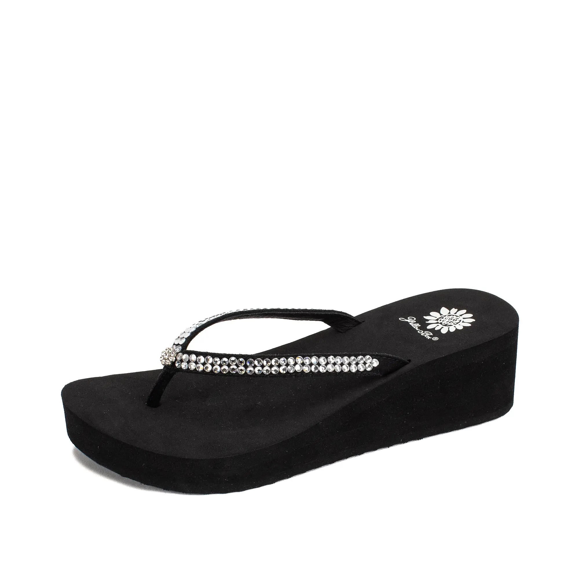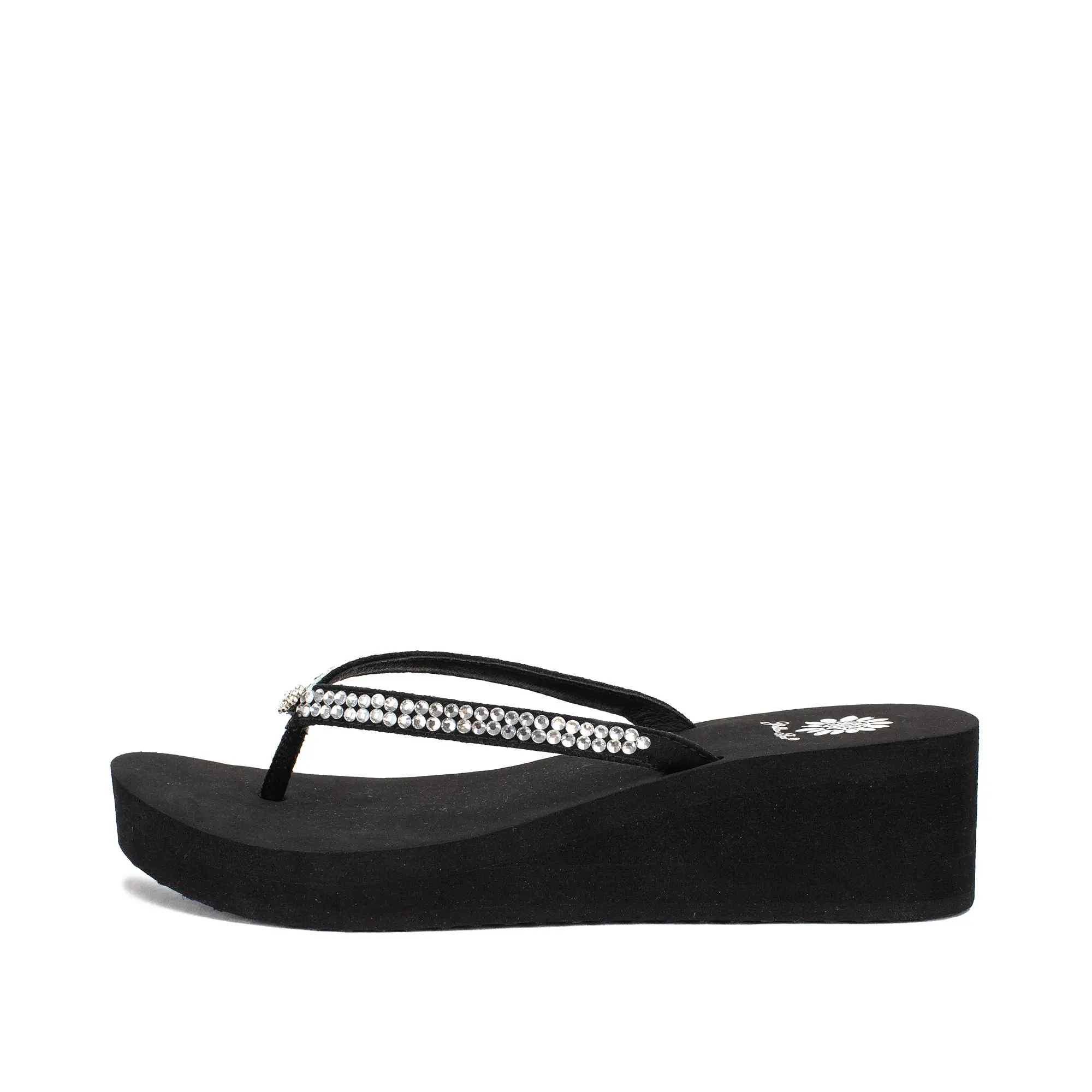 Charming and shining rhinestone-decorated straps top a sleek, modern wedged EVA foam sole to make the simplest.