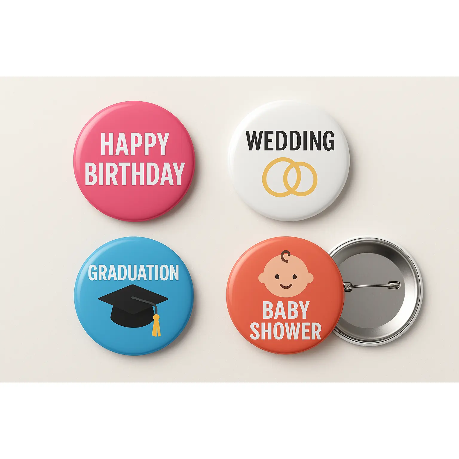 Our premium-quality button pins are the perfect touch for birthdays, weddings, graduations, baby showers, holidays, business events, and more. Whether you’re celebrating love, friendship, achievements, or just good vibes — these pins make every occasion unforgettable!